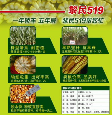 粒收王——黎民519,不用晾曬的玉米,種地大戶的福音.中國(guó)農(nóng)資聯(lián)盟.2015-05-24[引用日期2015-05-26]