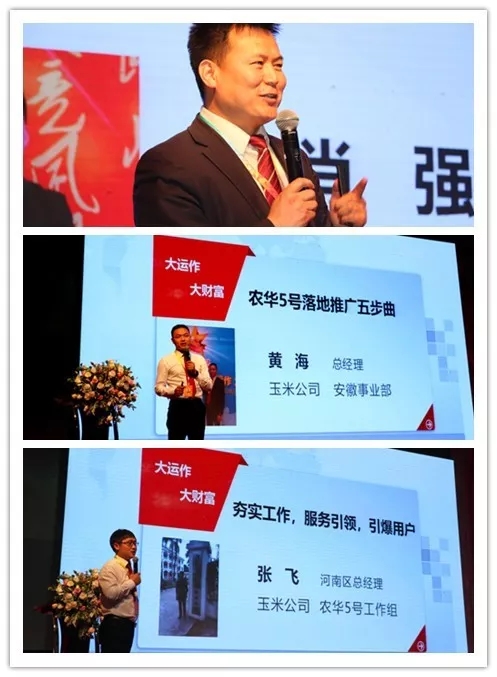 2018年刷爆玉米種業(yè)朋友圈的黃淮海革命性新品種農(nóng)華5號為什么這么火?來自各個區(qū)域的縣鄉(xiāng)合作伙伴向大家做了詳細(xì)的解讀,分享了他們的示范體系建設(shè)以及優(yōu)秀的大田表現(xiàn),農(nóng)華5號耐高溫、高產(chǎn)穩(wěn)產(chǎn)、密度適應(yīng)性強(qiáng)、綜合抗性好、糧質(zhì)好、脫水快等品質(zhì)得到農(nóng)戶們的高度認(rèn)可。山東冀南事業(yè)部肖強(qiáng)老師做了《誓做黃淮海第一大品種》的報告,詳細(xì)介紹了農(nóng)華5號六大保障,號召伙伴們團(tuán)結(jié)一心干成大事業(yè)。安徽事業(yè)部黃海老師、農(nóng)華5號河南事業(yè)部張飛老師就農(nóng)華5號如何成就的鄉(xiāng)村層面關(guān)鍵策略及重點做法做了詳細(xì)闡述與部署,夯實工作,服務(wù)落地,引爆市場。
