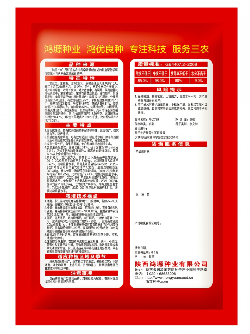陜西鴻塬種業(yè)有限公司獨家擁有油菜品種“鴻優(yōu)789”(品種登記編號:GPD油菜(2024)320201)的生產(chǎn)經(jīng)營權(quán)和品種維護(hù)權(quán)。