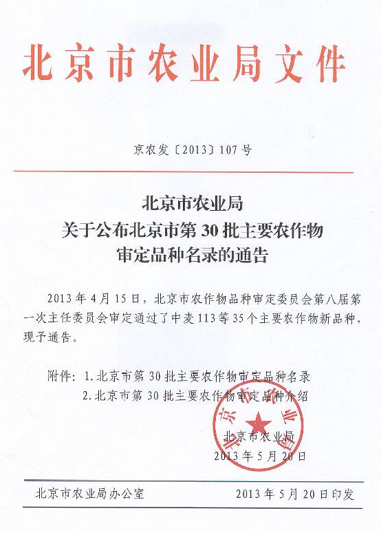 北京市第30批主要農(nóng)作物審定品種名錄