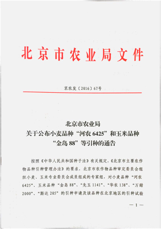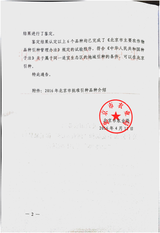 • 北京市第46批主要農作物審定品種名錄公告
