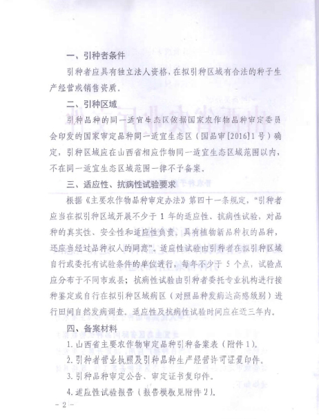 山西:關(guān)于開(kāi)展主要農(nóng)作物品種引種工作的通知