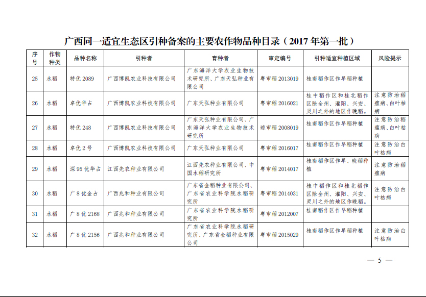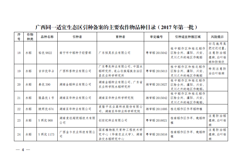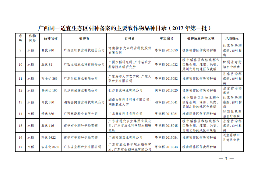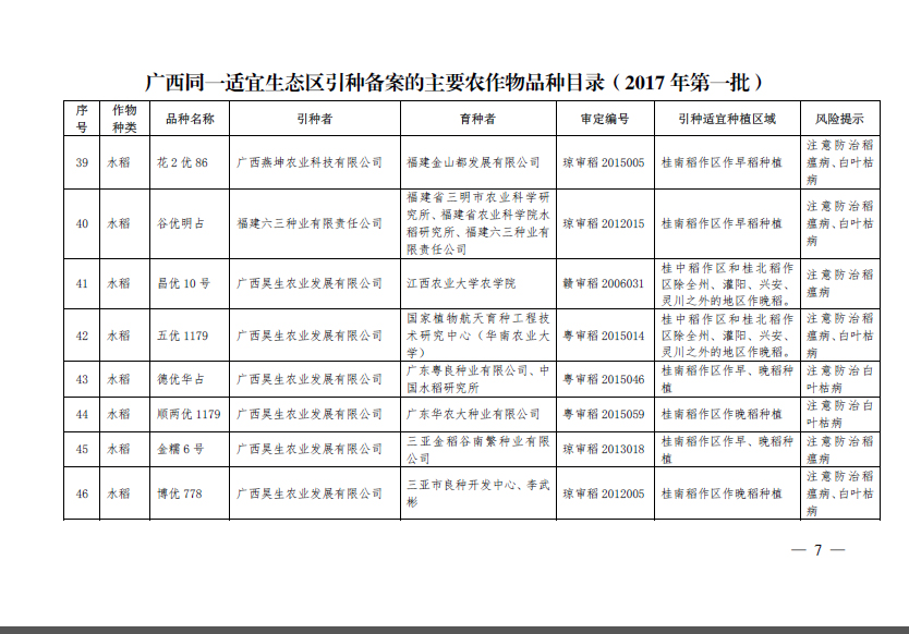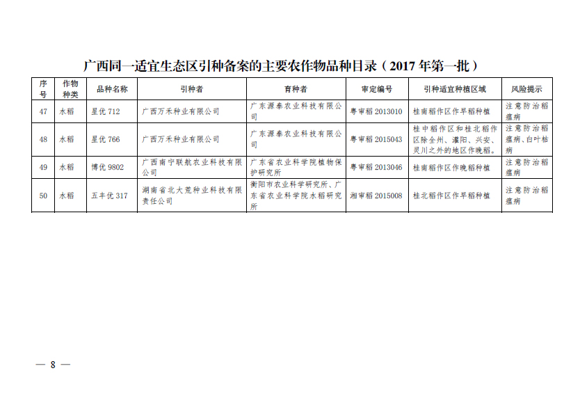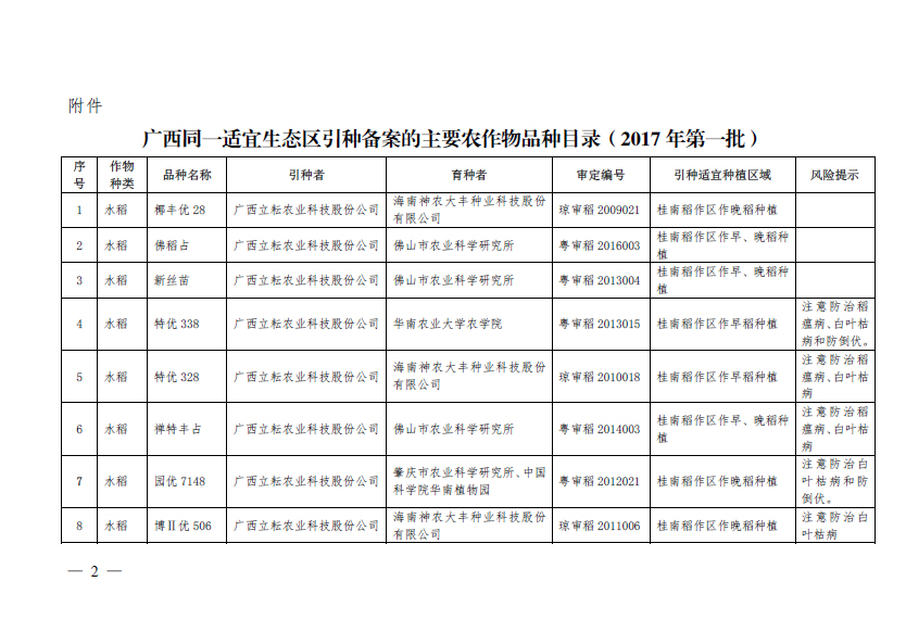 廣西壯族自治區(qū)農(nóng)業(yè)廳引種備案公告(第一批)