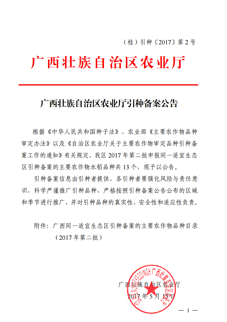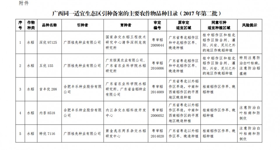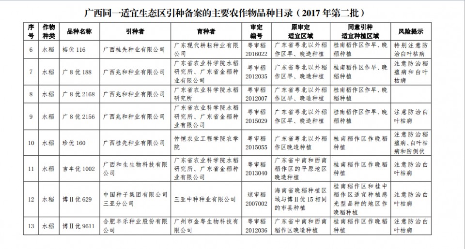 廣西壯族自治區(qū)農(nóng)業(yè)廳引種備案公告第二批