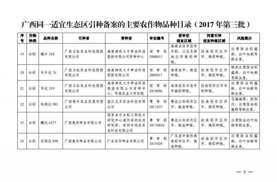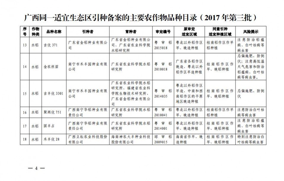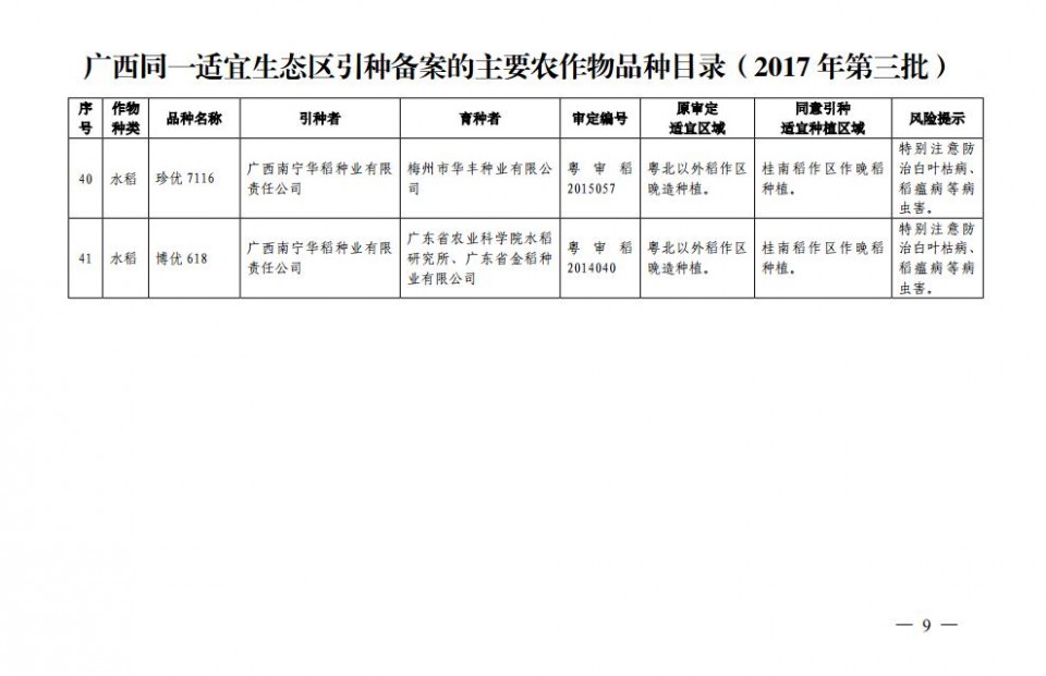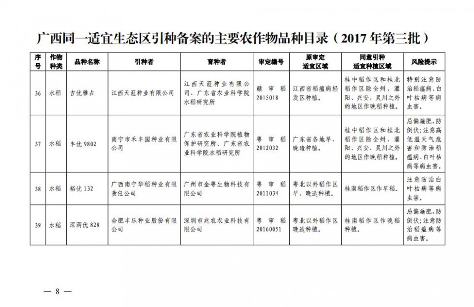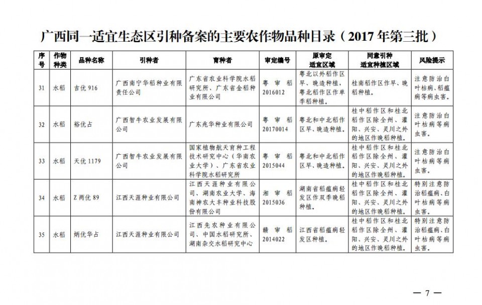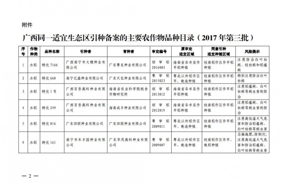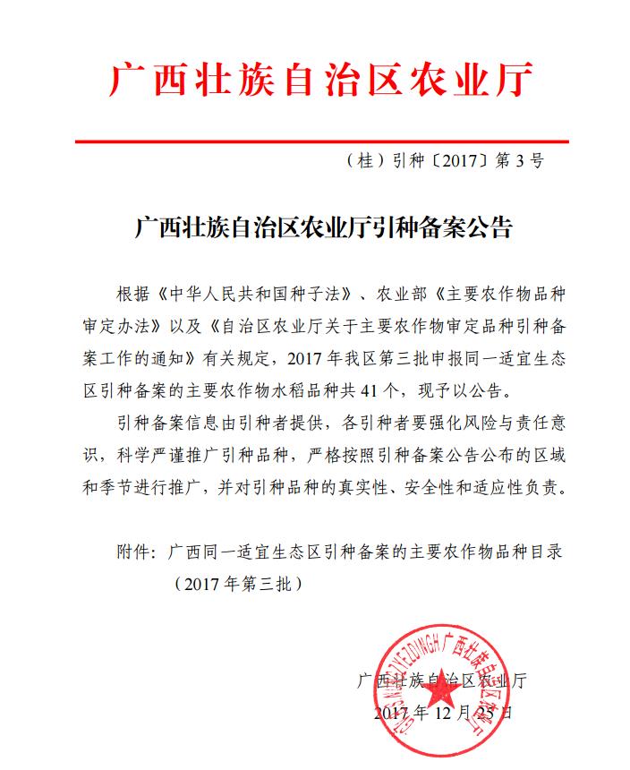 廣西壯族自治區(qū)農(nóng)業(yè)廳引種備案公告(第三批)