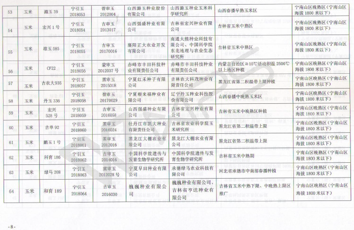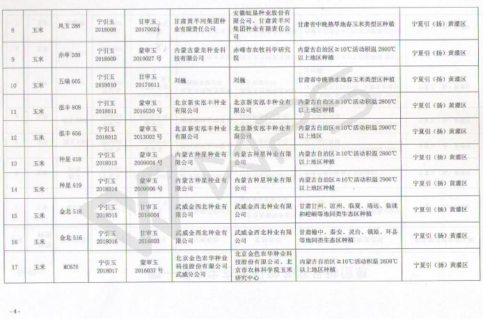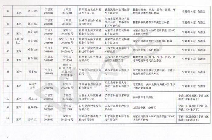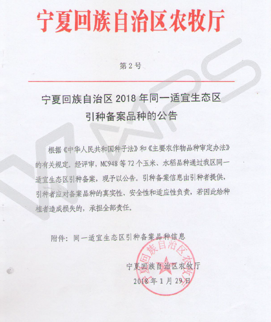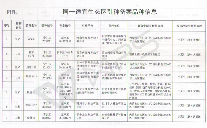 寧夏回族自治區(qū)2018年同一適宜生態(tài)區(qū)引種備案品種的公告