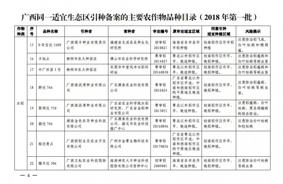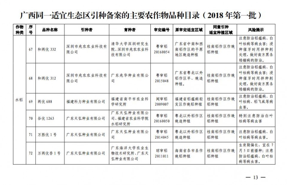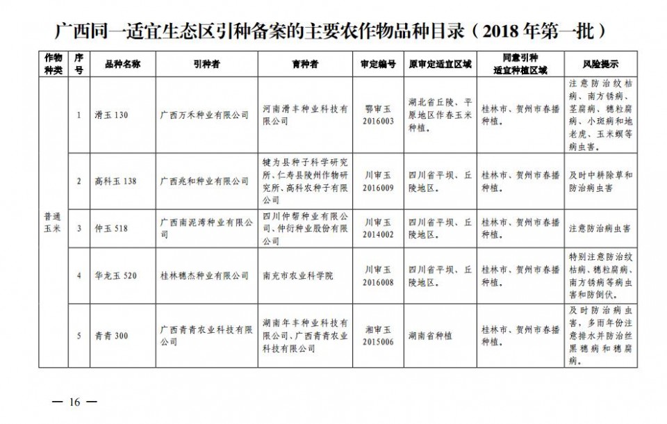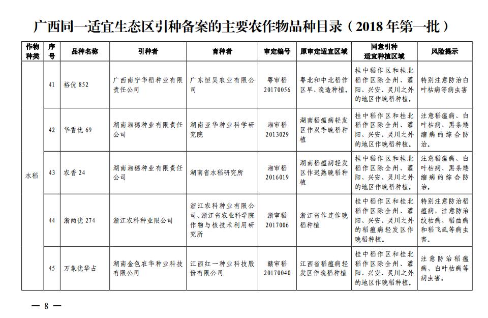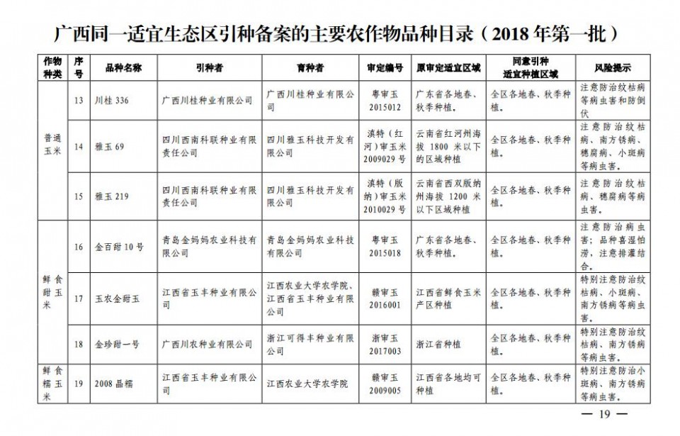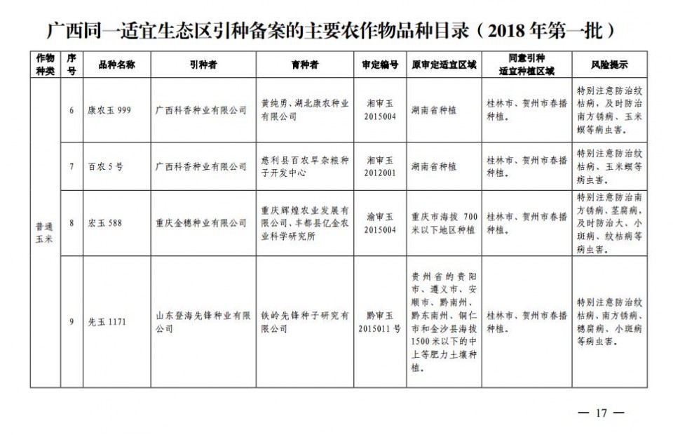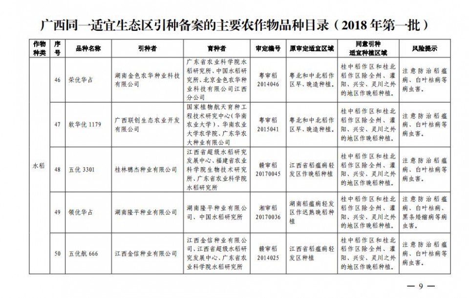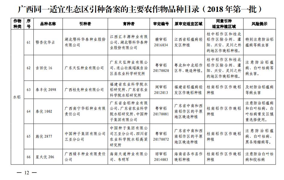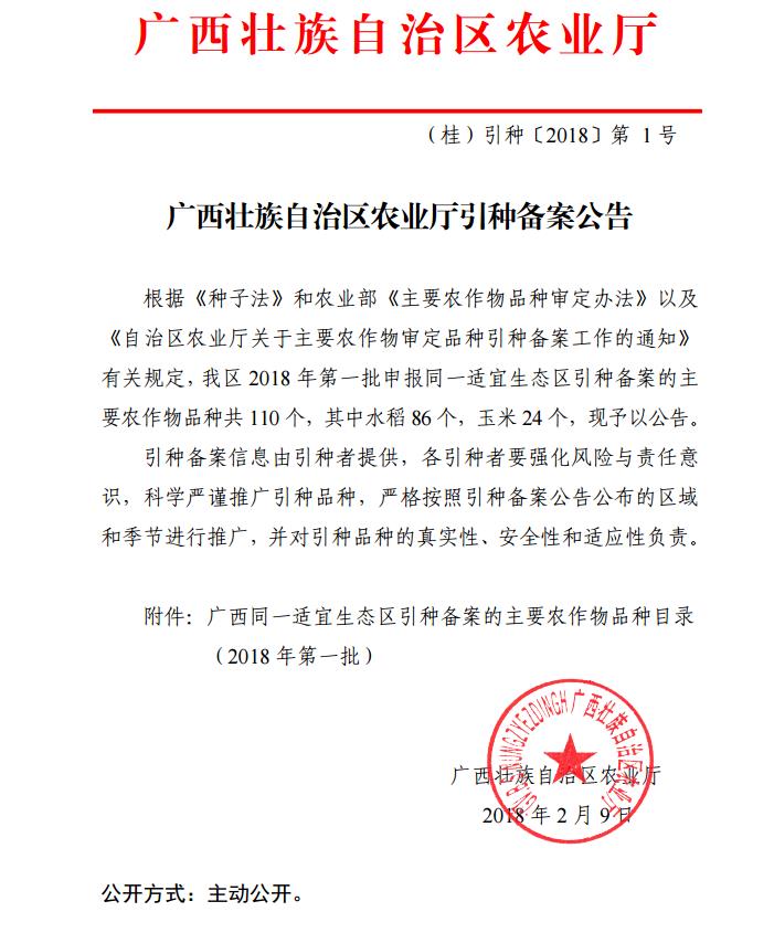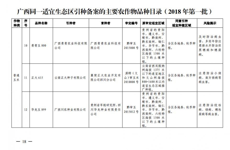 廣西壯族自治區(qū)農(nóng)業(yè)廳引種備案公告(2018年第1批)