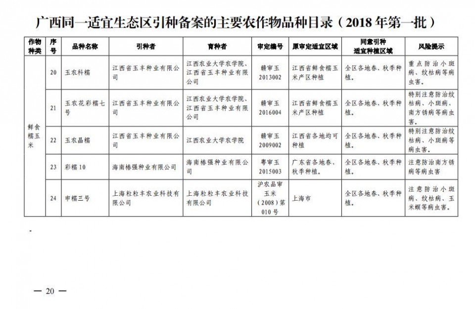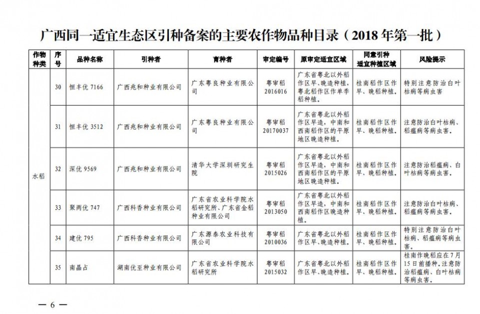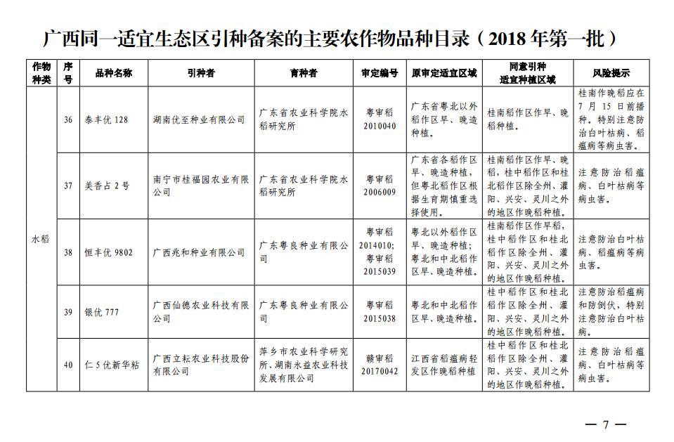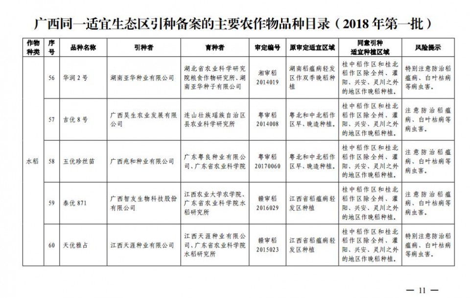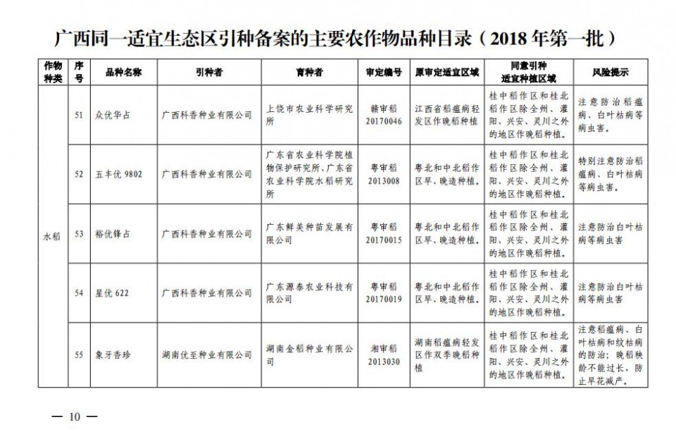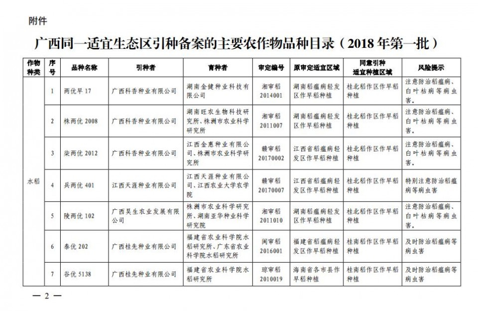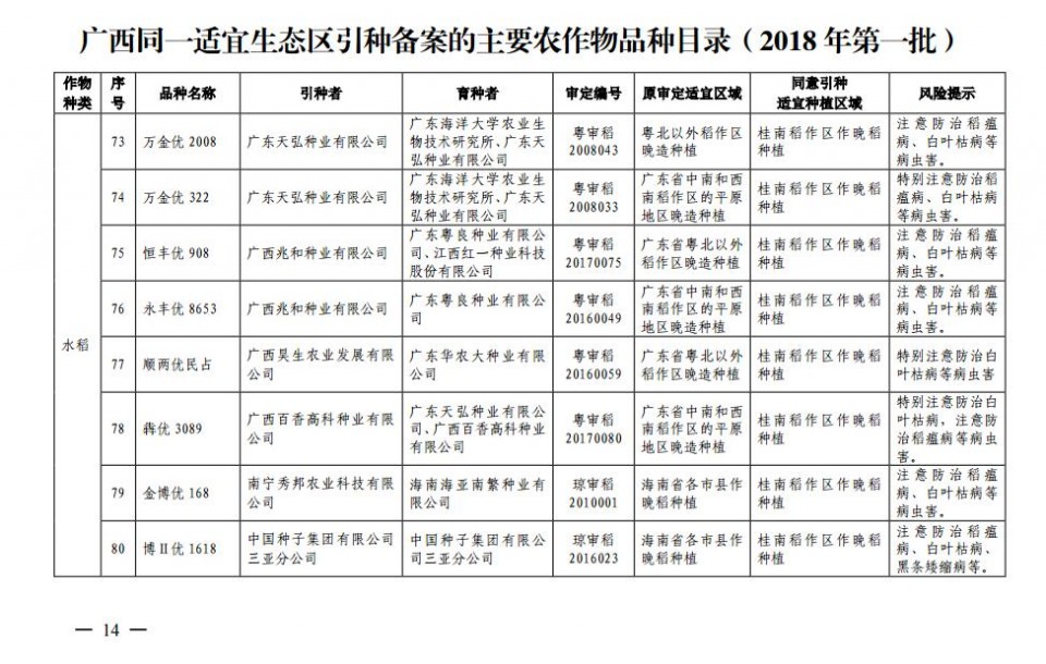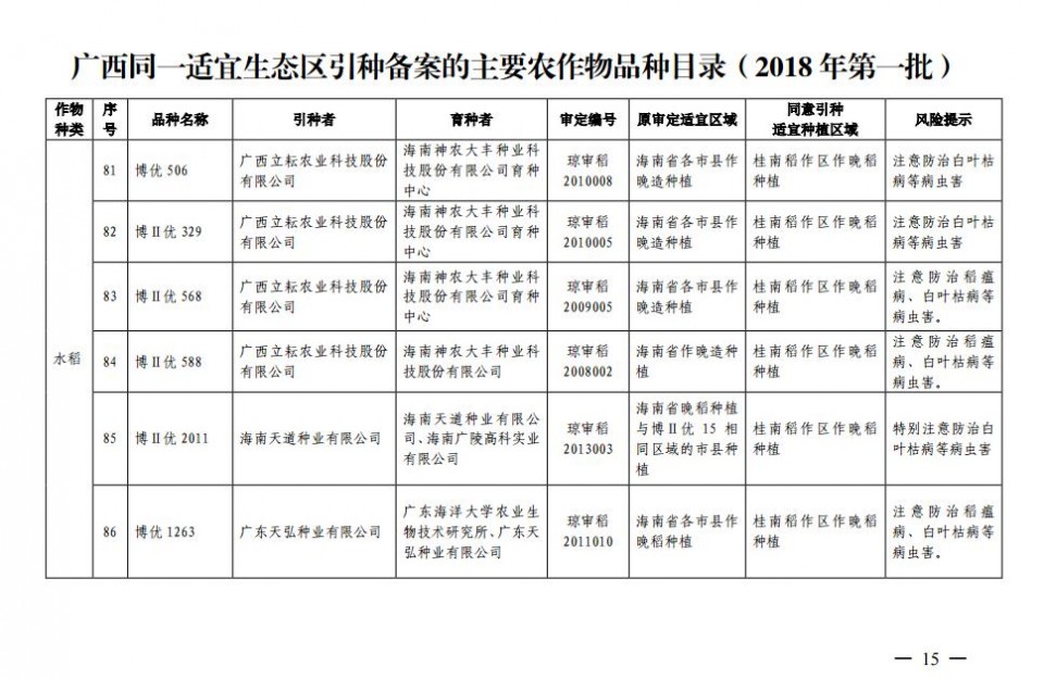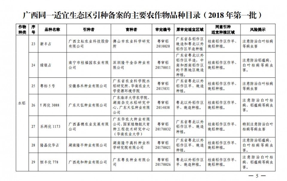 廣西壯族自治區(qū)農(nóng)業(yè)廳引種備案公告(2018年第1批)