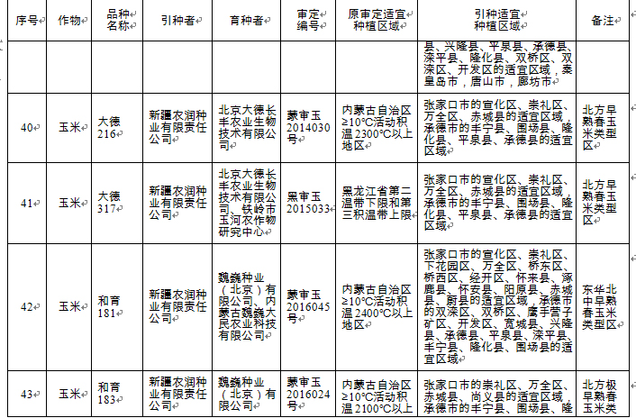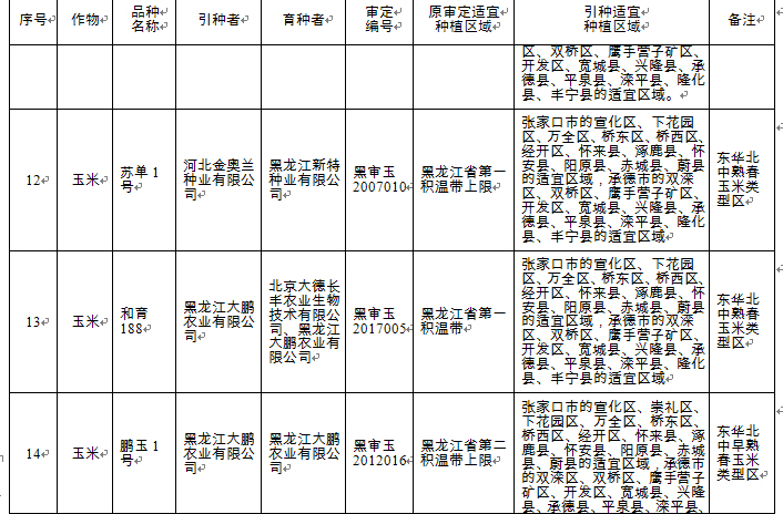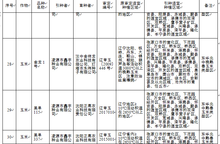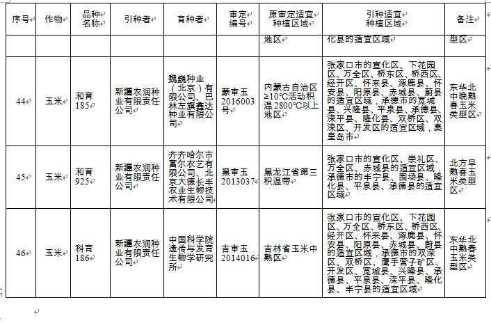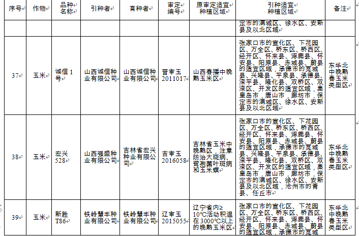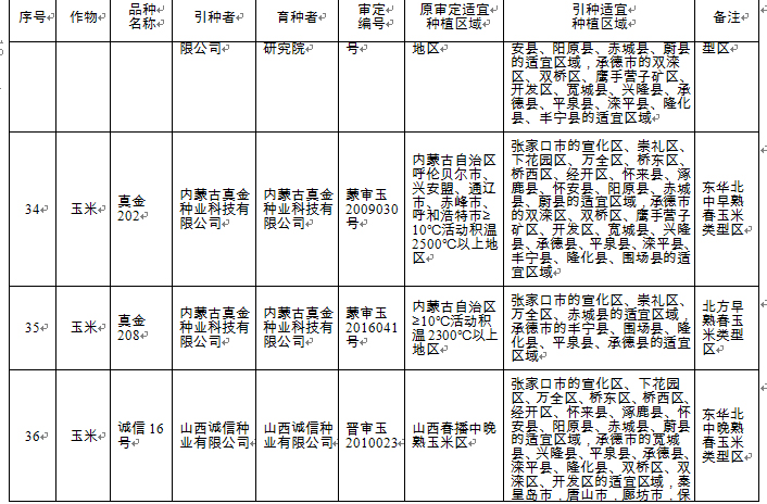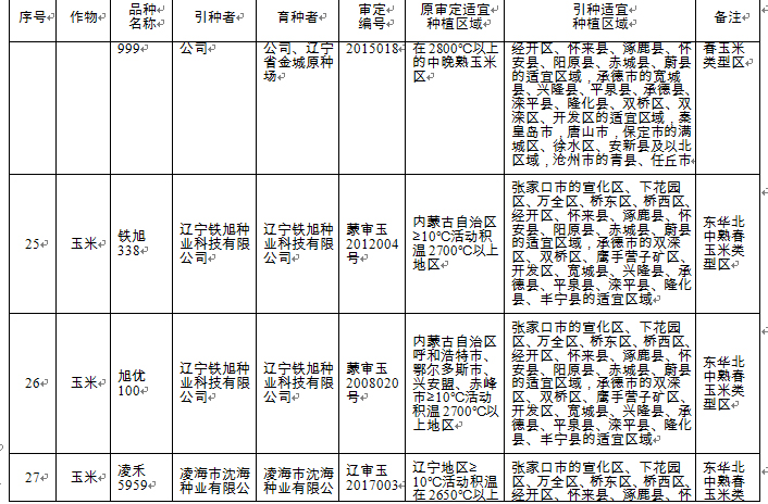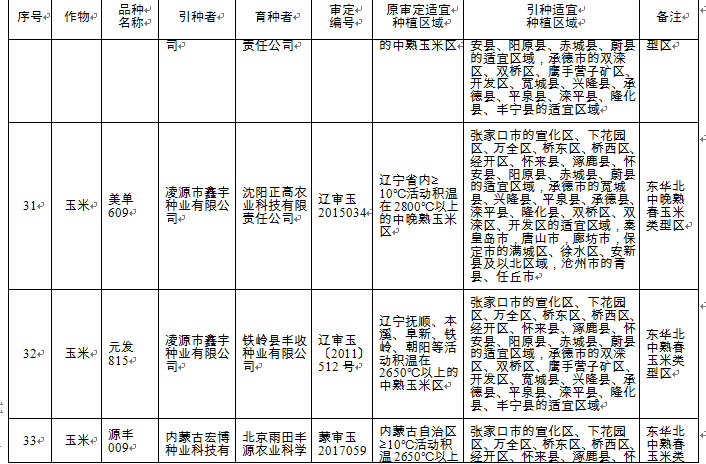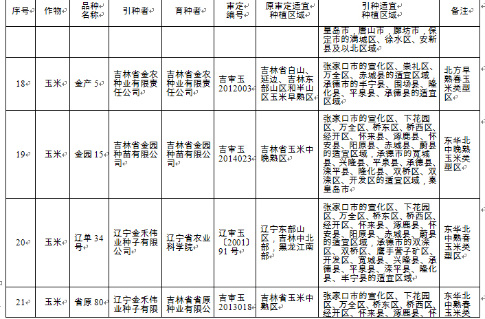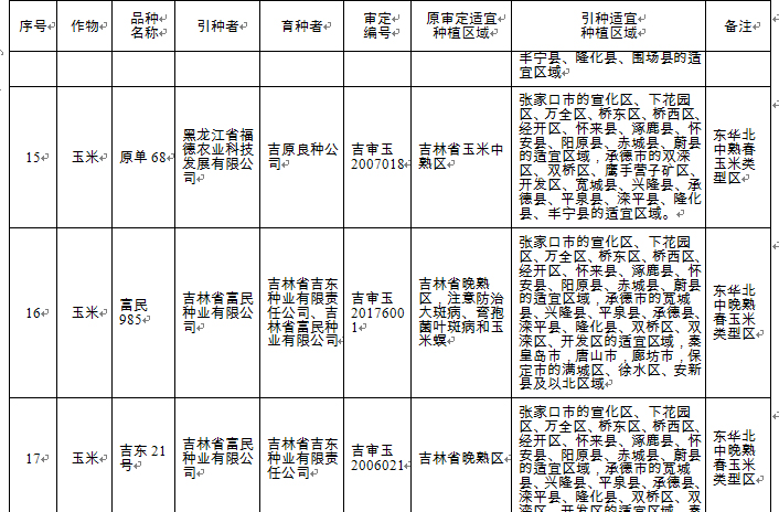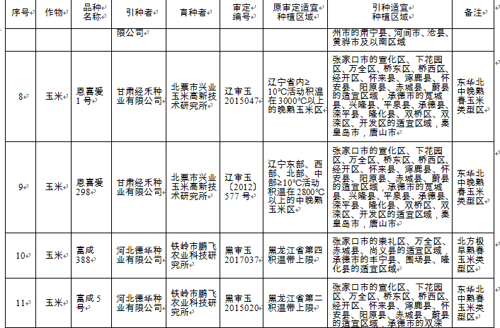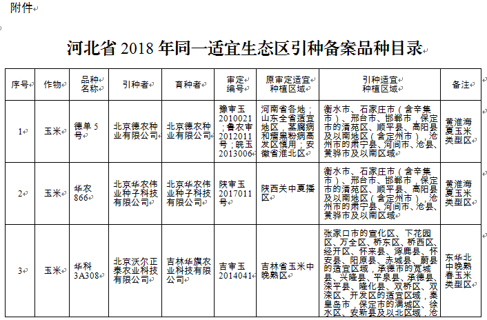 附件:河北省2018年同一適宜生態(tài)區(qū)引種備案品種目錄