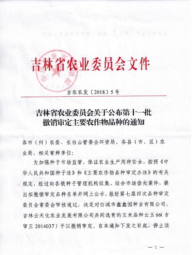 吉林省第十一批撤銷審定農(nóng)作物品種