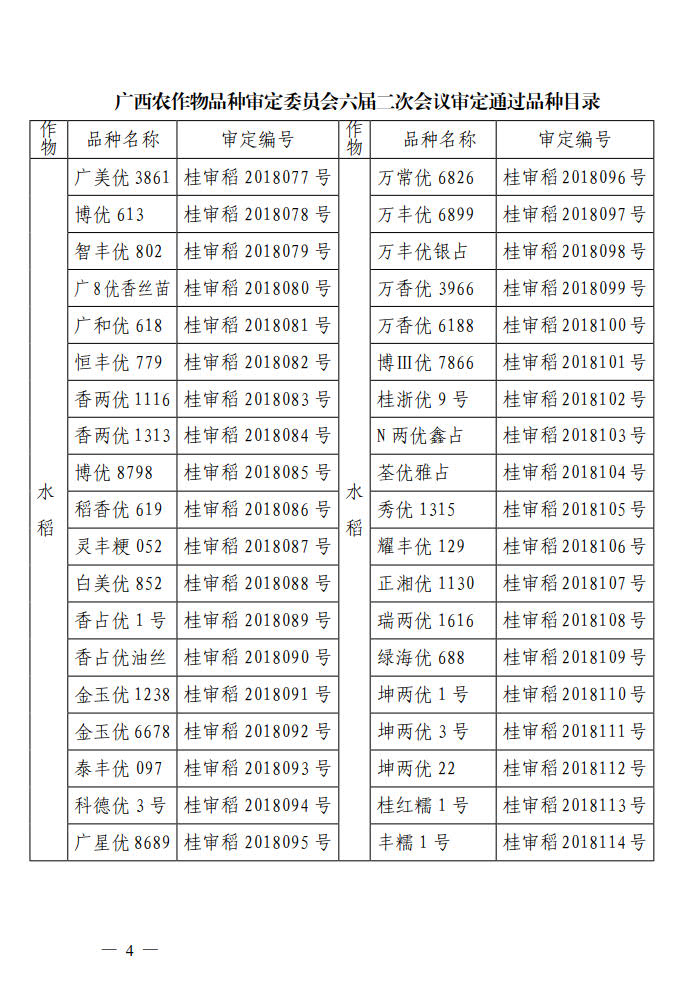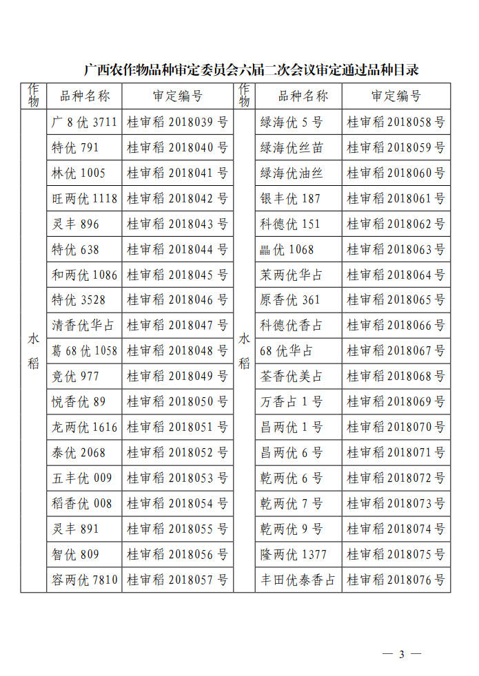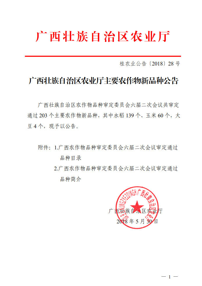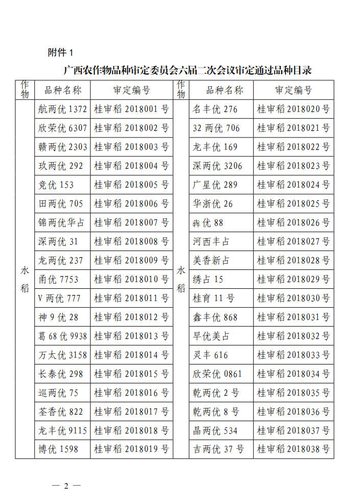 廣西壯族自治區(qū)農(nóng)業(yè)廳主要農(nóng)作物新品種公告(2018年)
