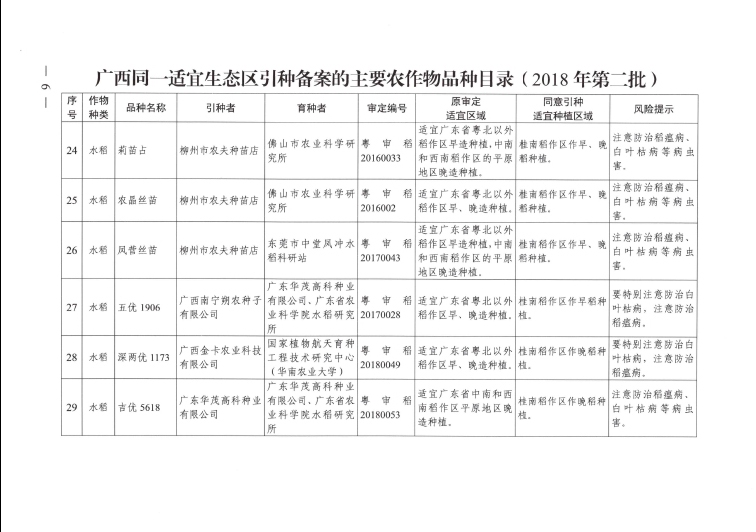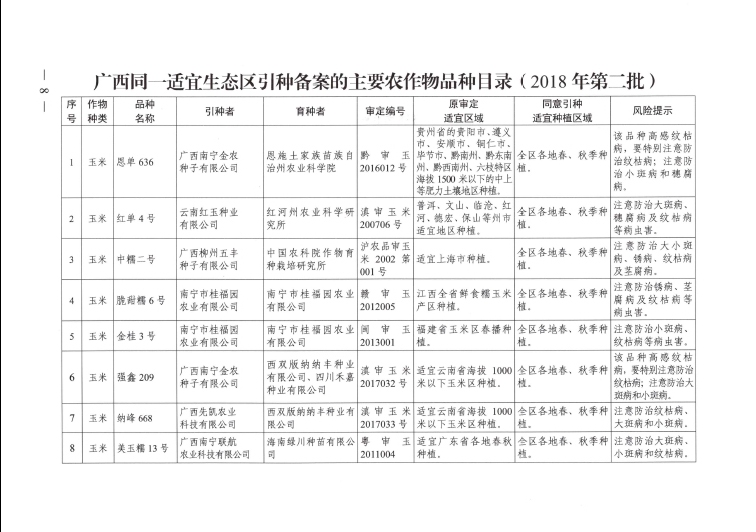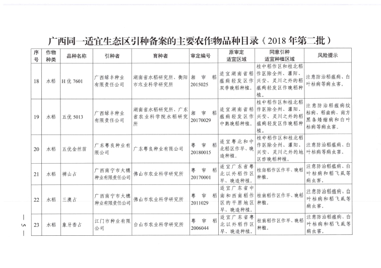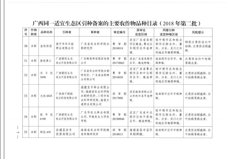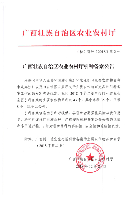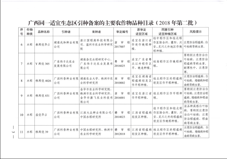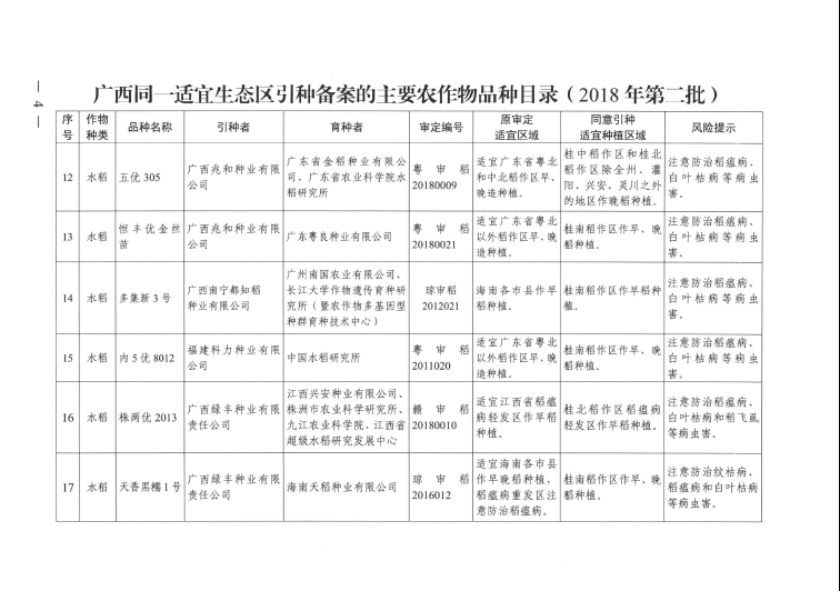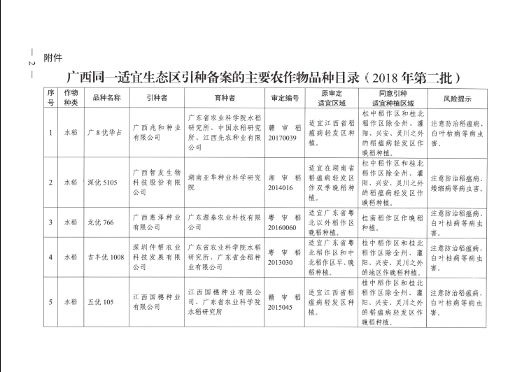 廣西壯族自治區(qū)農(nóng)業(yè)農(nóng)村廳引種備案公告(2018年)