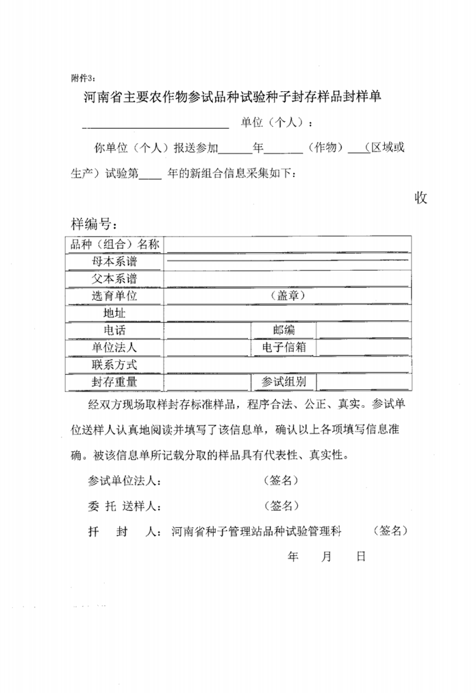 河南省種子管理站關(guān)于送交2019年河南省玉米、大豆參試品種種子的通知