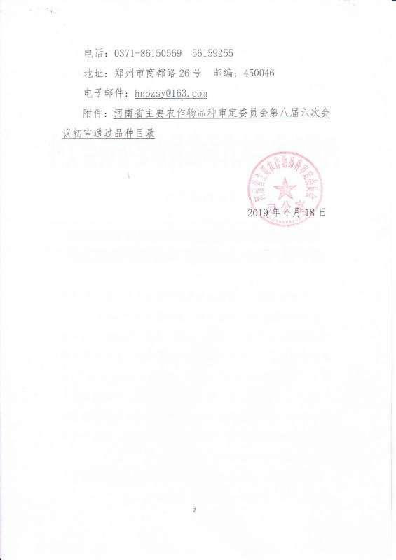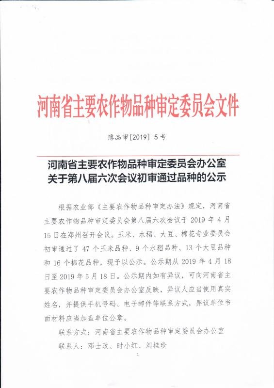 河南省主要農作物品種審定委員會第八屆六次會議初審通過品種目錄