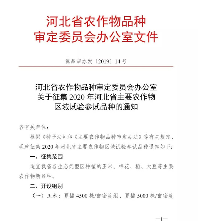 河北省開(kāi)始2020年征集區(qū)域試驗(yàn)參試品種了!