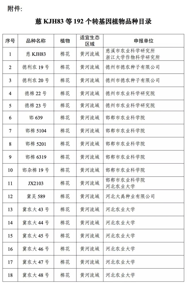 附件:慈KJH83等192個(gè)轉(zhuǎn)基因植物品種目錄