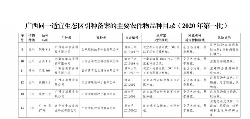 廣西壯族自治區(qū)農(nóng)業(yè)農(nóng)村廳引種備案公告(2020年第一批).pdf