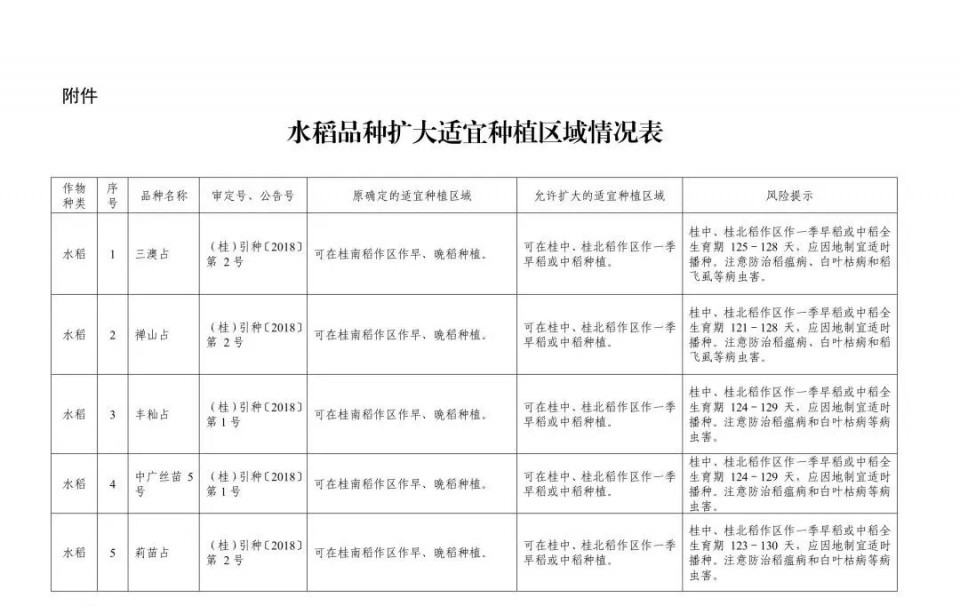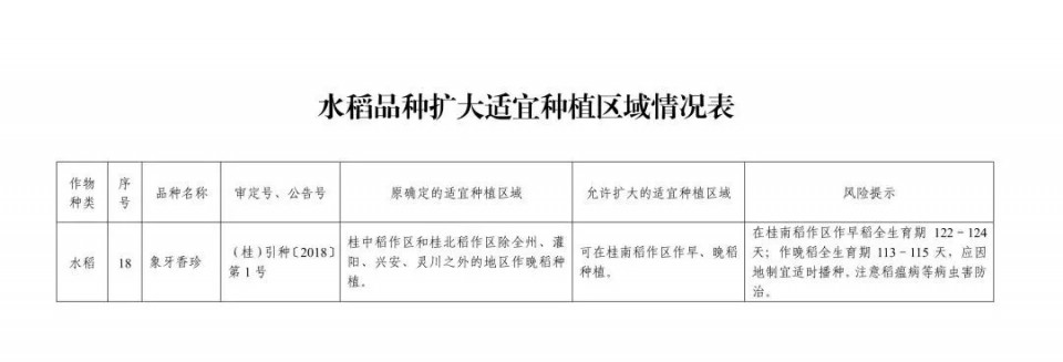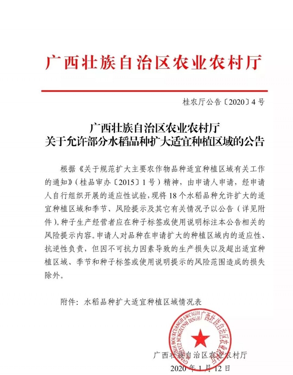 廣西壯族自治區(qū)農(nóng)業(yè)農(nóng)村廳關(guān)于允許部分水稻品種擴(kuò)大適宜種植區(qū)域的公告(2020第一批).pdf