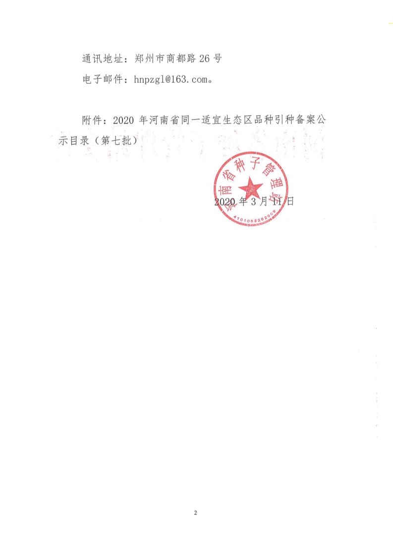 2020年河南省同一適宜生態(tài)區(qū)品種引種備案公示目錄(第七批)