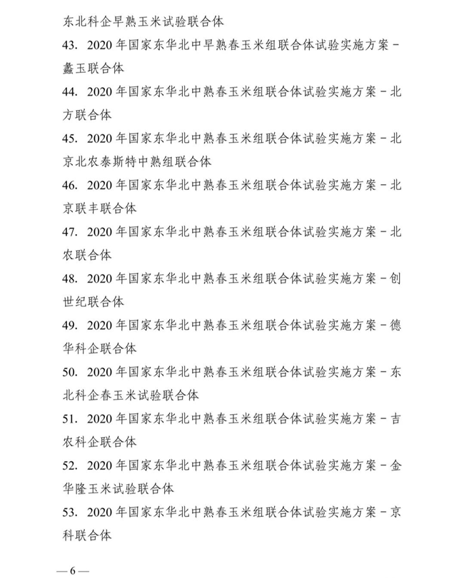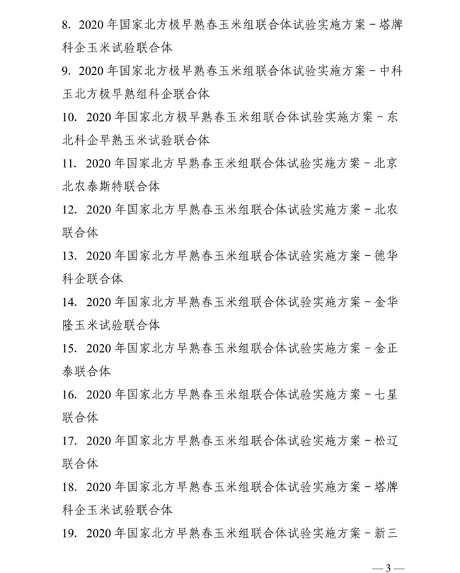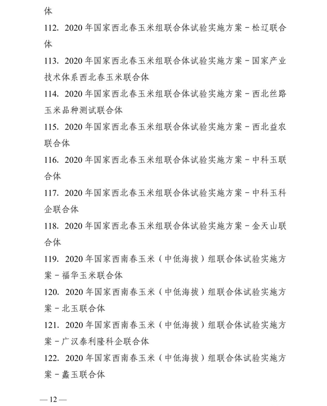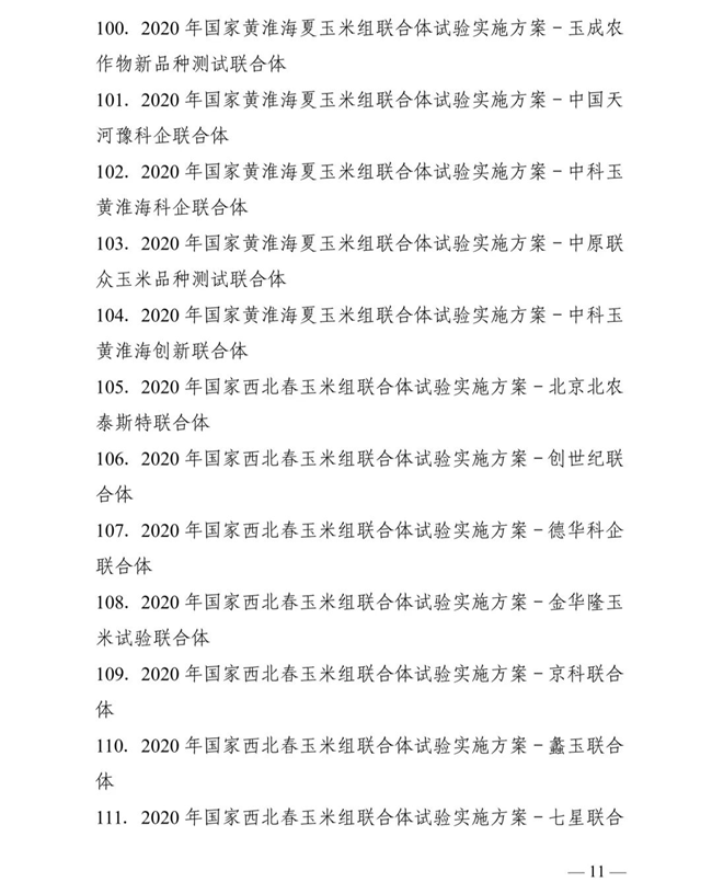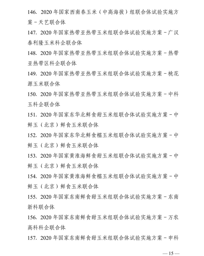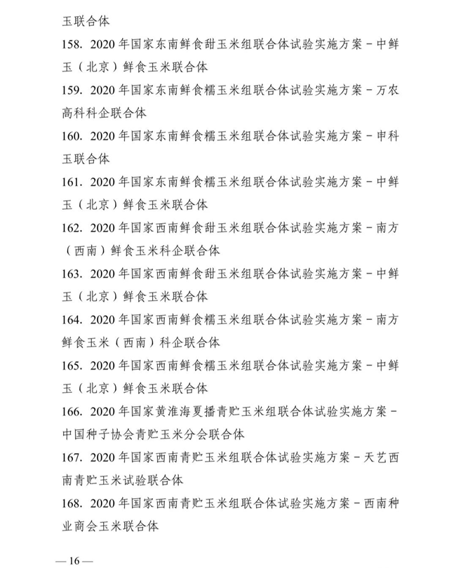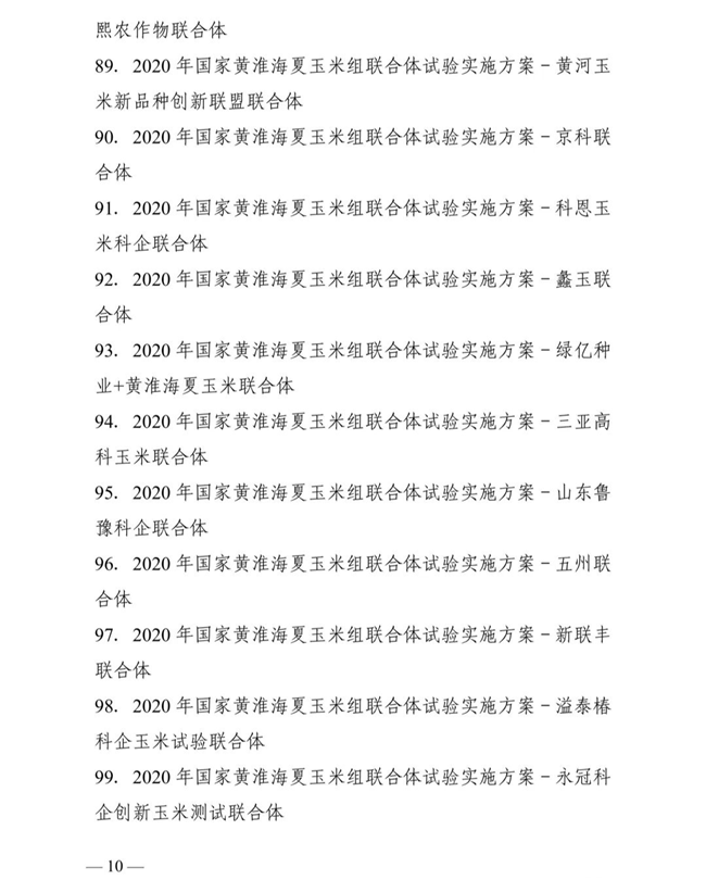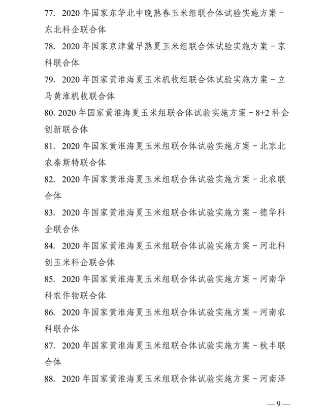 2020年國家玉米品種聯(lián)合體試驗實施方案