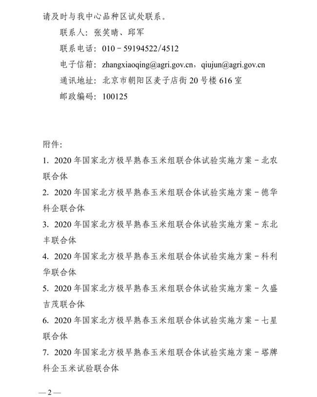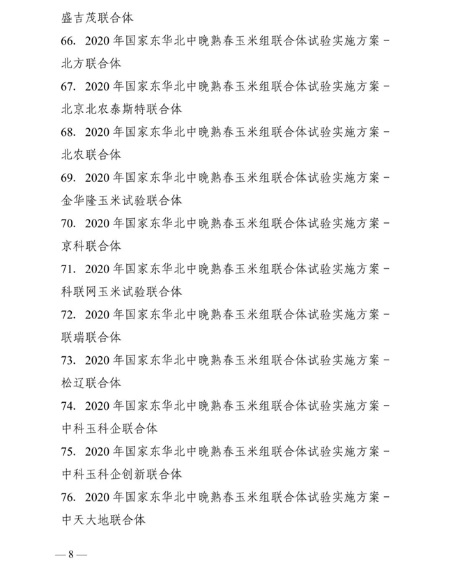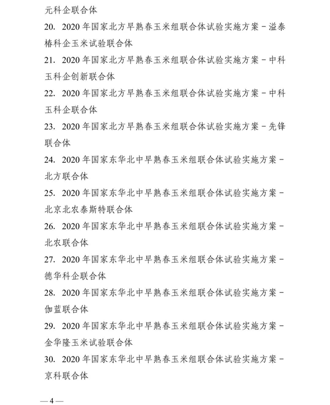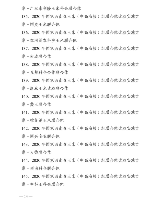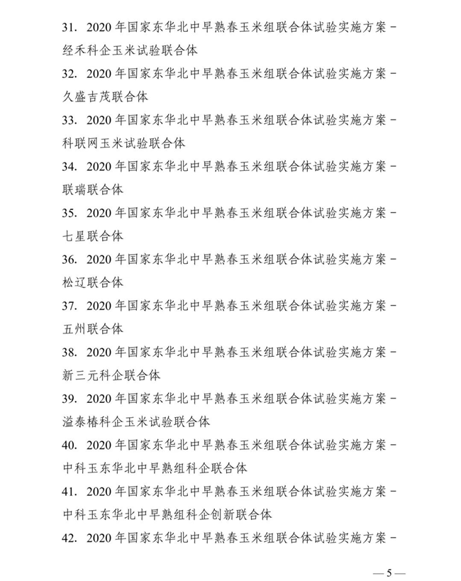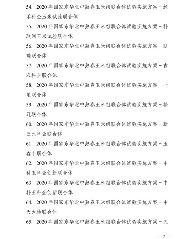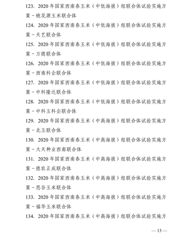 2020年國家玉米品種聯(lián)合體試驗實施方案
