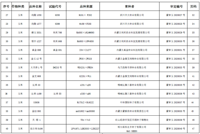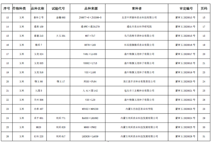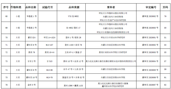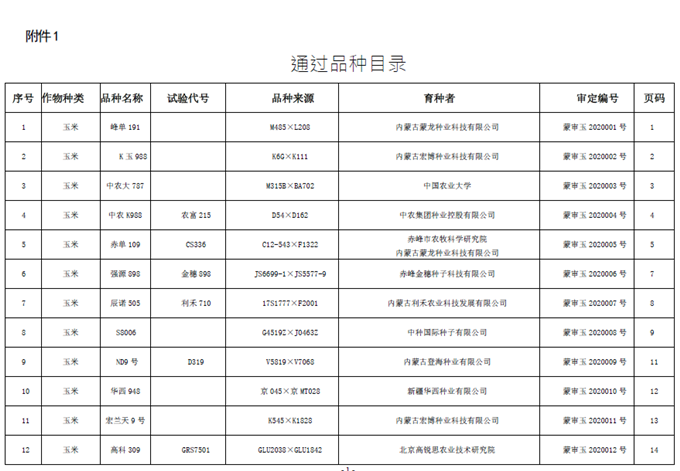 內(nèi)蒙古自治區(qū)農(nóng)牧廳2020年農(nóng)作物品種審定公告