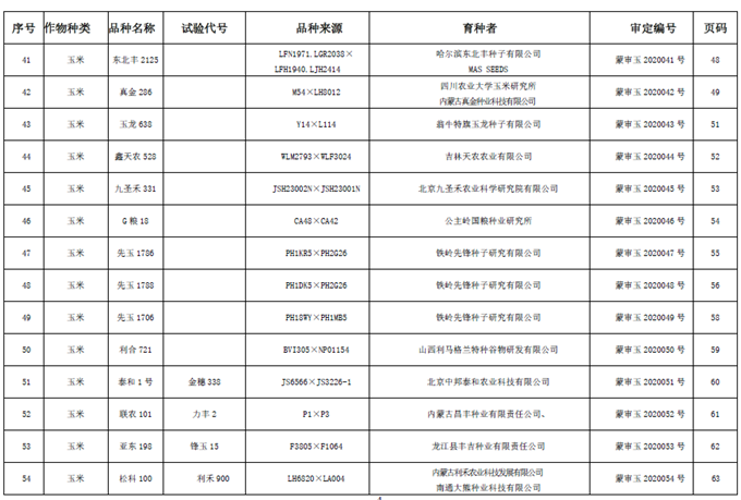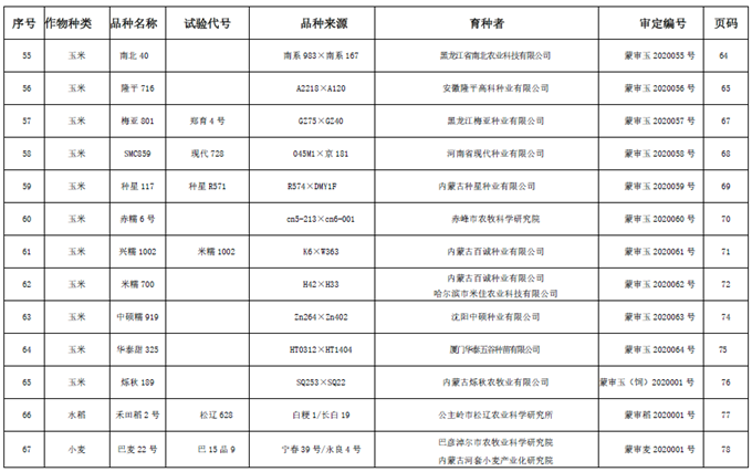2020年農(nóng)作物品種審定公告-內(nèi)蒙古自治區(qū)農(nóng)牧廳