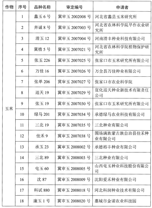 關(guān)于擬撤銷部分河北省審定主要農(nóng)作物品種的公示(2022年)