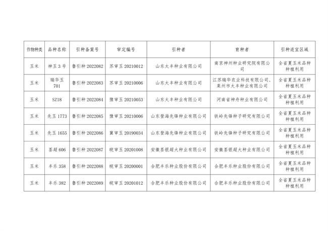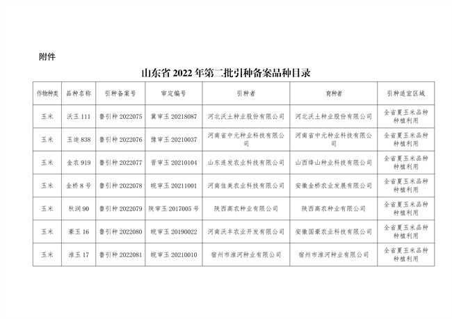 關(guān)于發(fā)布山東省2022年第二批主要農(nóng)作物引種備案品種的通告
