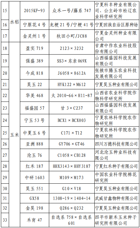 附 件:1.寧夏農(nóng)作物品種審定委員會第三十三次初審會議通過品種信息
