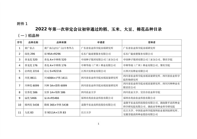 關(guān)于第四屆國家農(nóng)作物品種審定委員會2022年第一次審定會議初審?fù)ㄟ^品種的公示