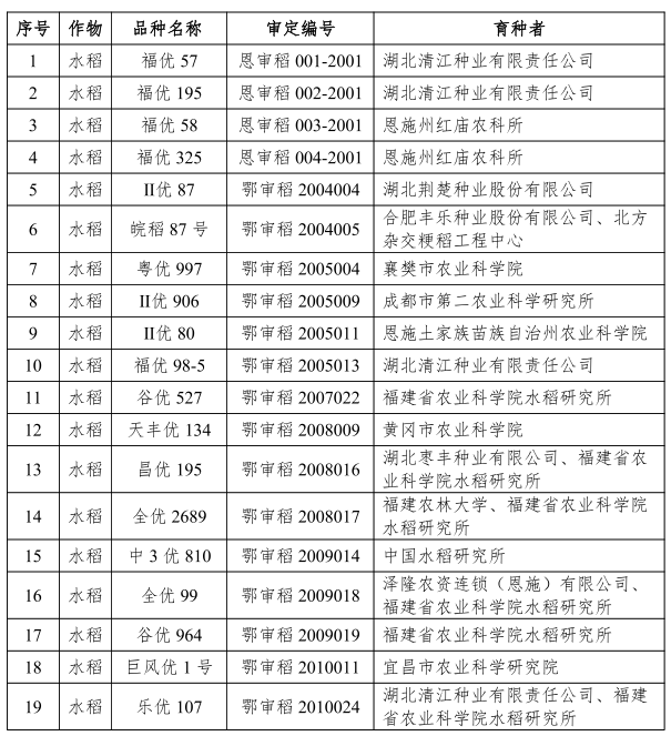 附件:湖北省主要農(nóng)作物撤銷審定品種目錄(第一批)