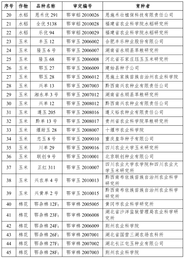 根據(jù)《中華人民共和國種子法》《主要農(nóng)作物品種審定辦法》有關(guān)規(guī)定,經(jīng)第六屆湖北省主要農(nóng)作物品種審定委員會第五次主任委員會會議審核,決定撤銷湖北省農(nóng)作物品種審定委員會審定的48個水稻、玉米、棉花、大豆品種,現(xiàn)予通告。