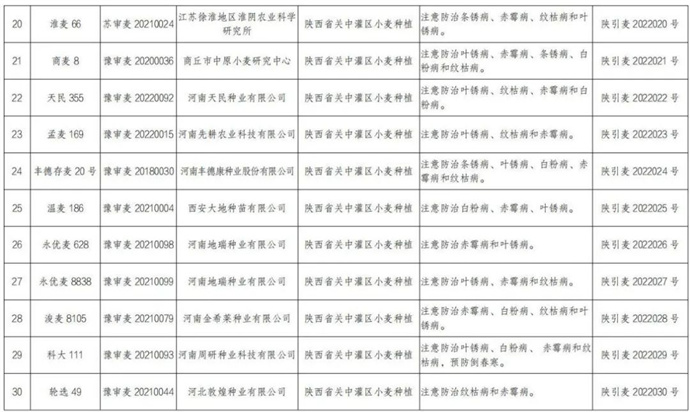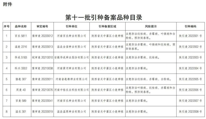 陜西省農(nóng)業(yè)農(nóng)村廳關(guān)于公布第十一批引種備案品種的通知