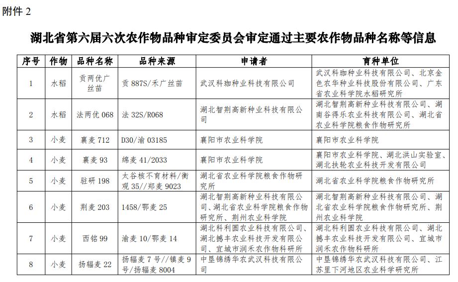 關(guān)于2022年北京市、湖北省主要農(nóng)作物審定品種名稱等信息的公示