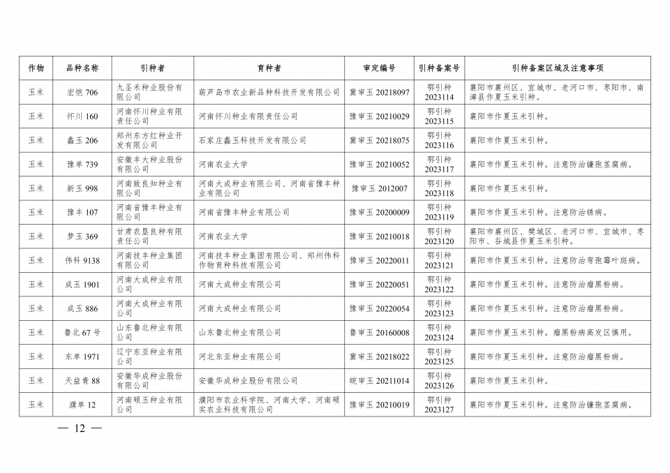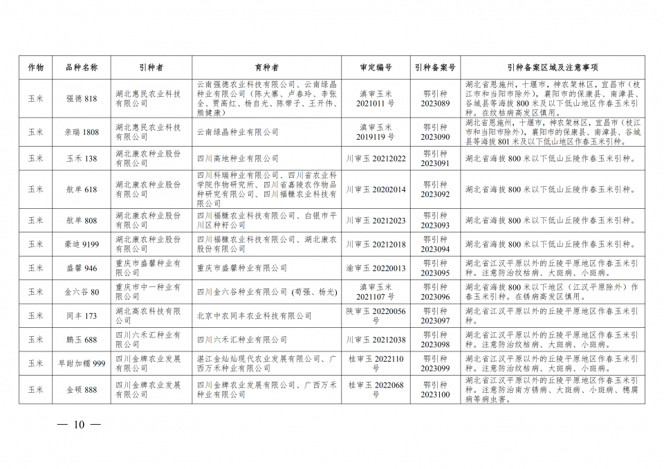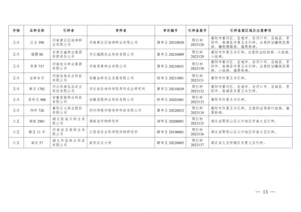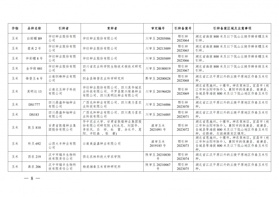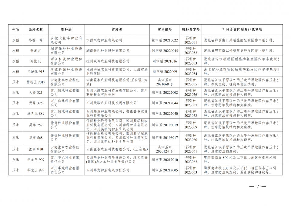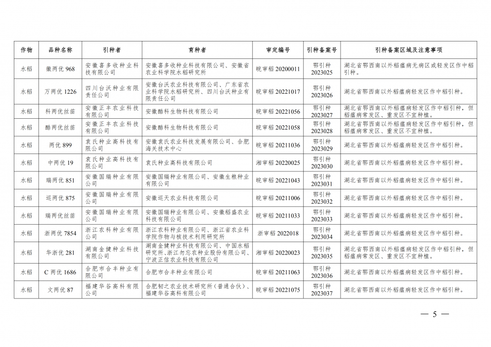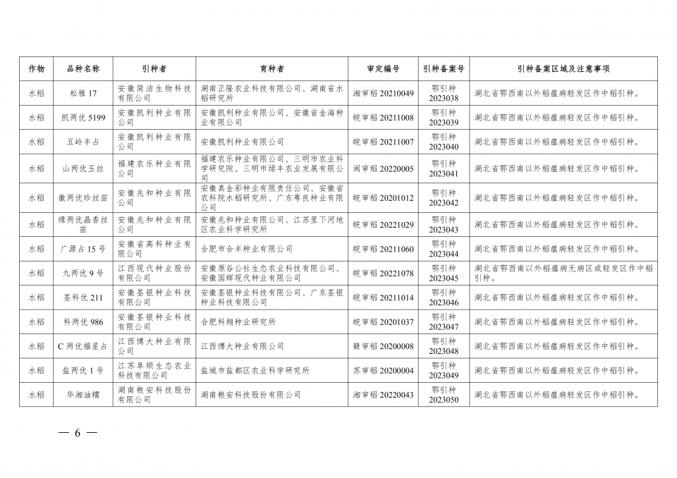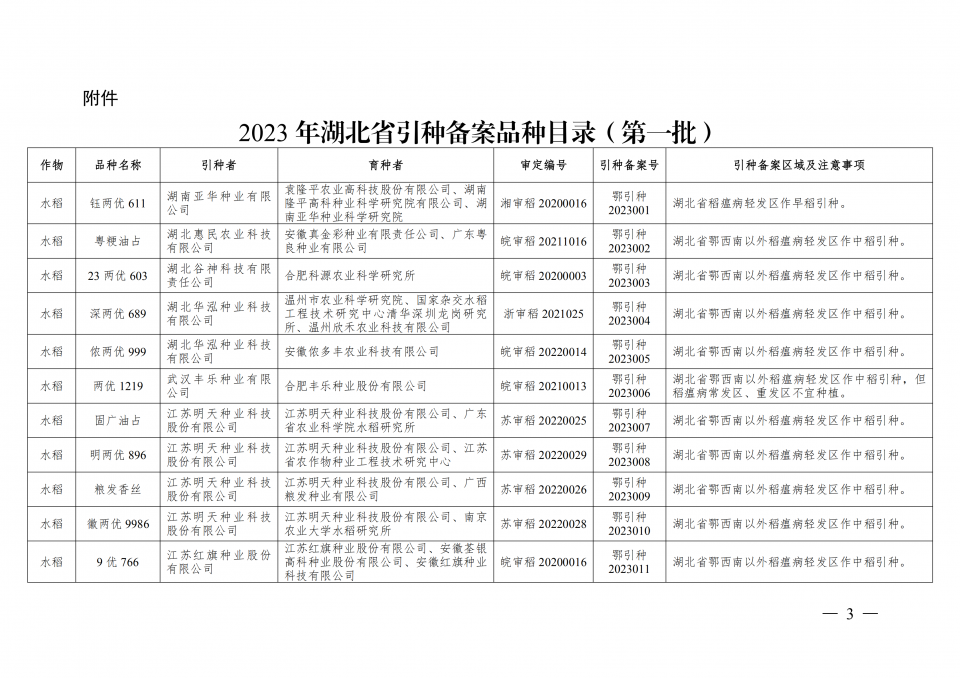 附件:2023年湖北省引種備案品種目錄(第一批)