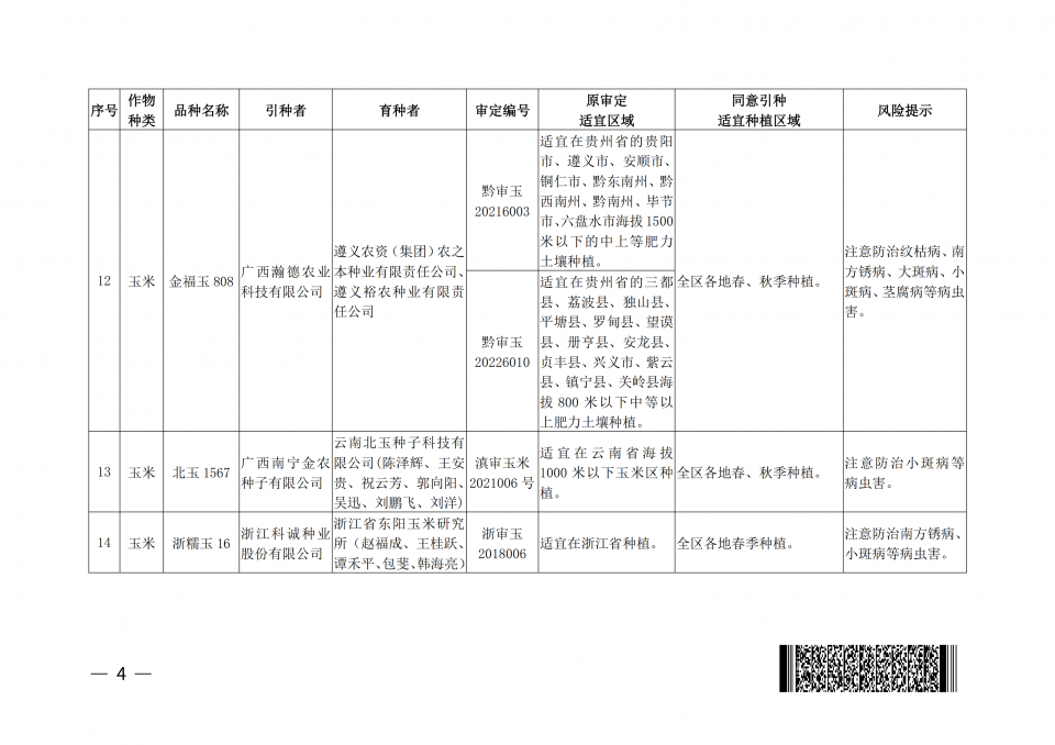 廣西同一適宜生態(tài)區(qū)引種備案的主要農(nóng)作物品種目錄(2024年第一批)
