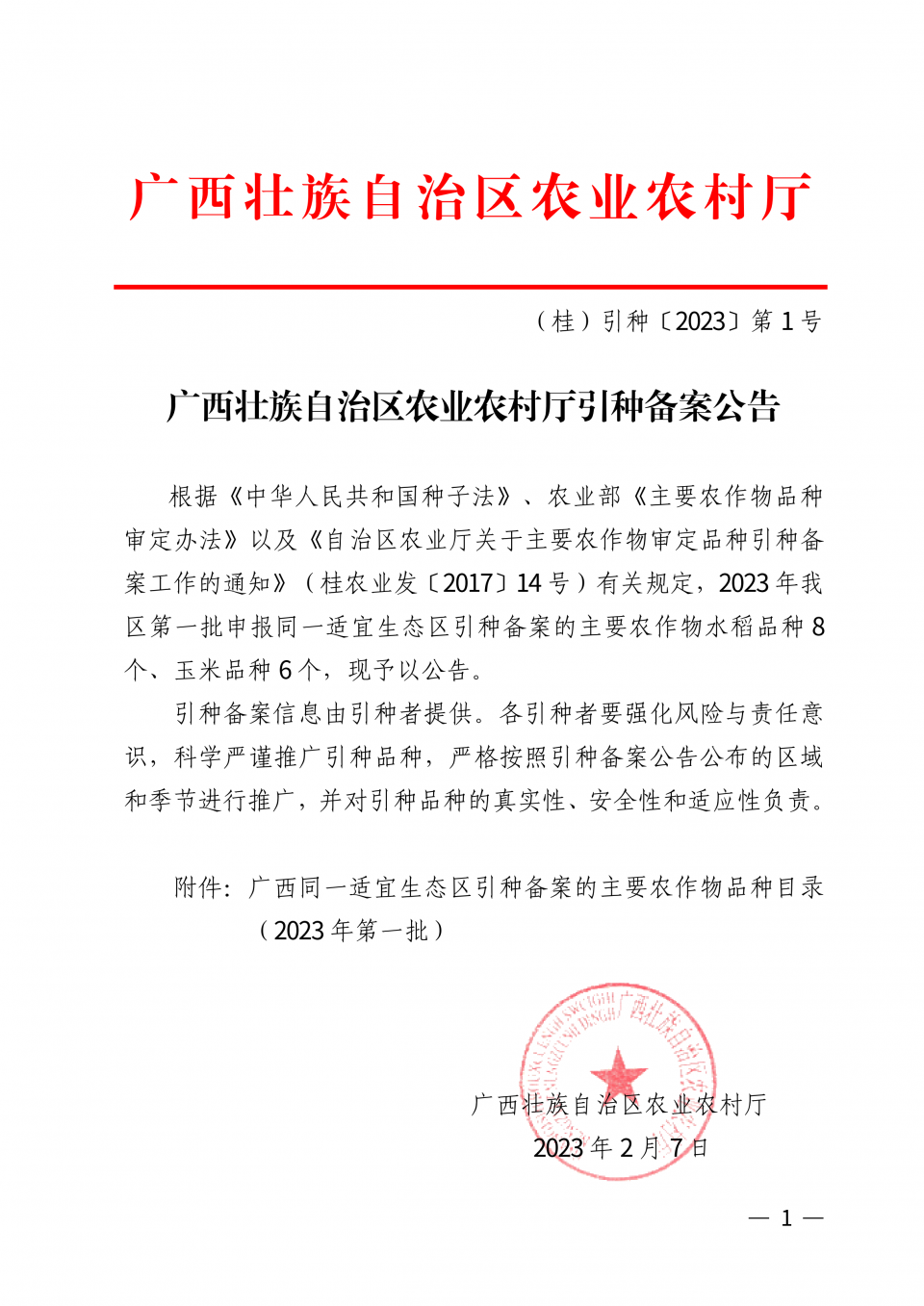廣西壯族自治區(qū)農(nóng)業(yè)農(nóng)村廳引種備案公告.pdf