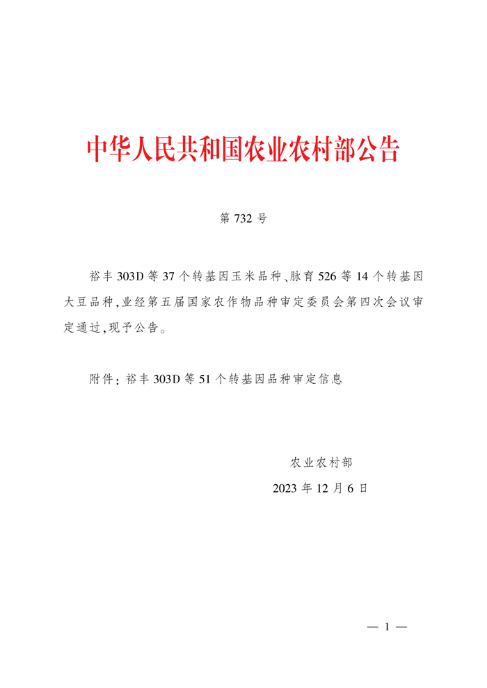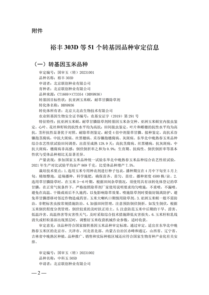 附件: 裕豐303D等51個轉(zhuǎn)基因品種審定信息
