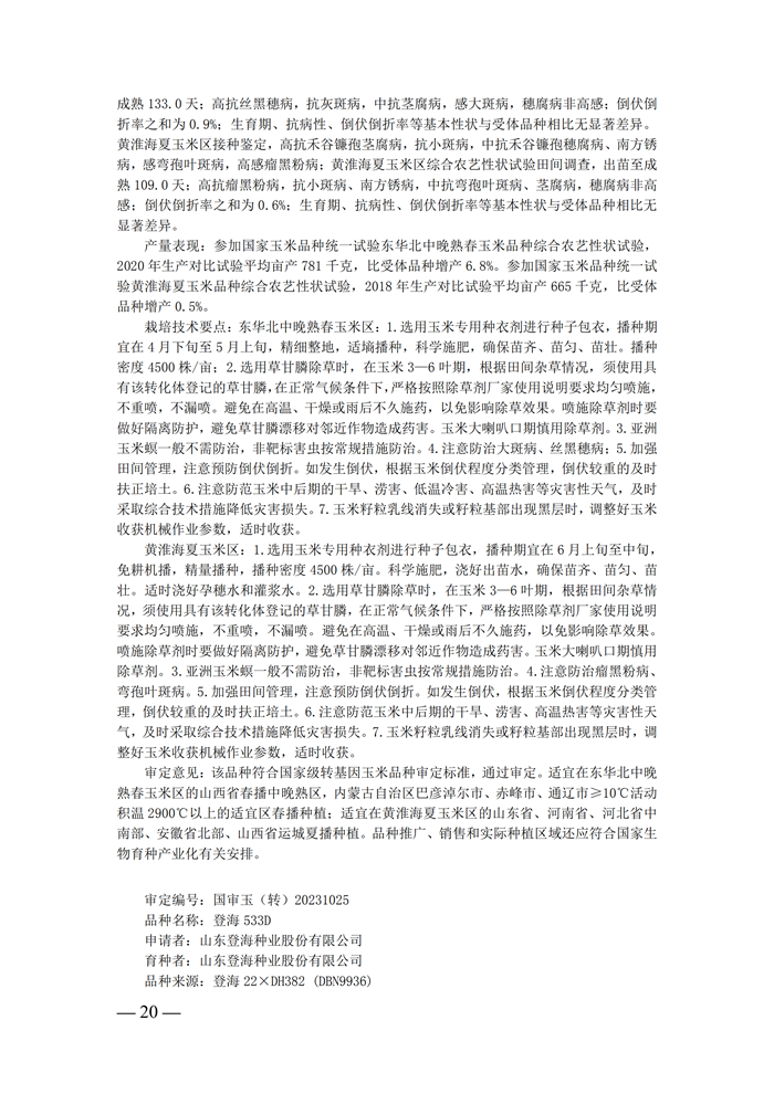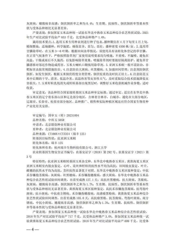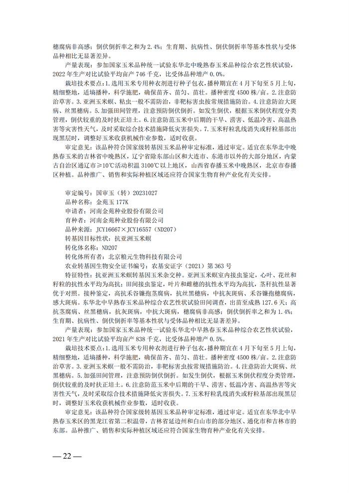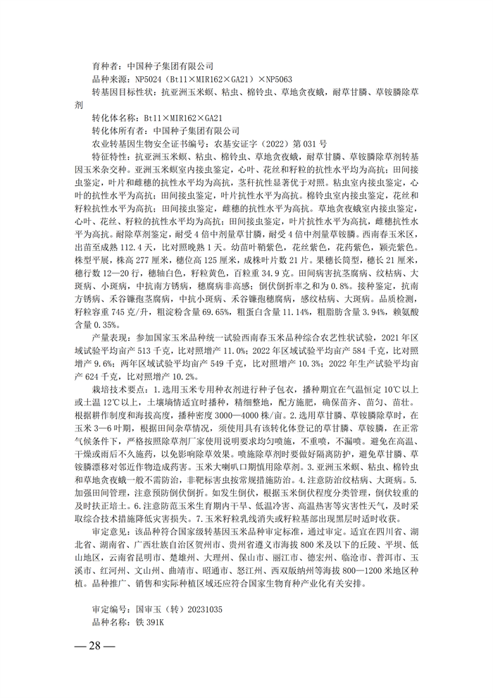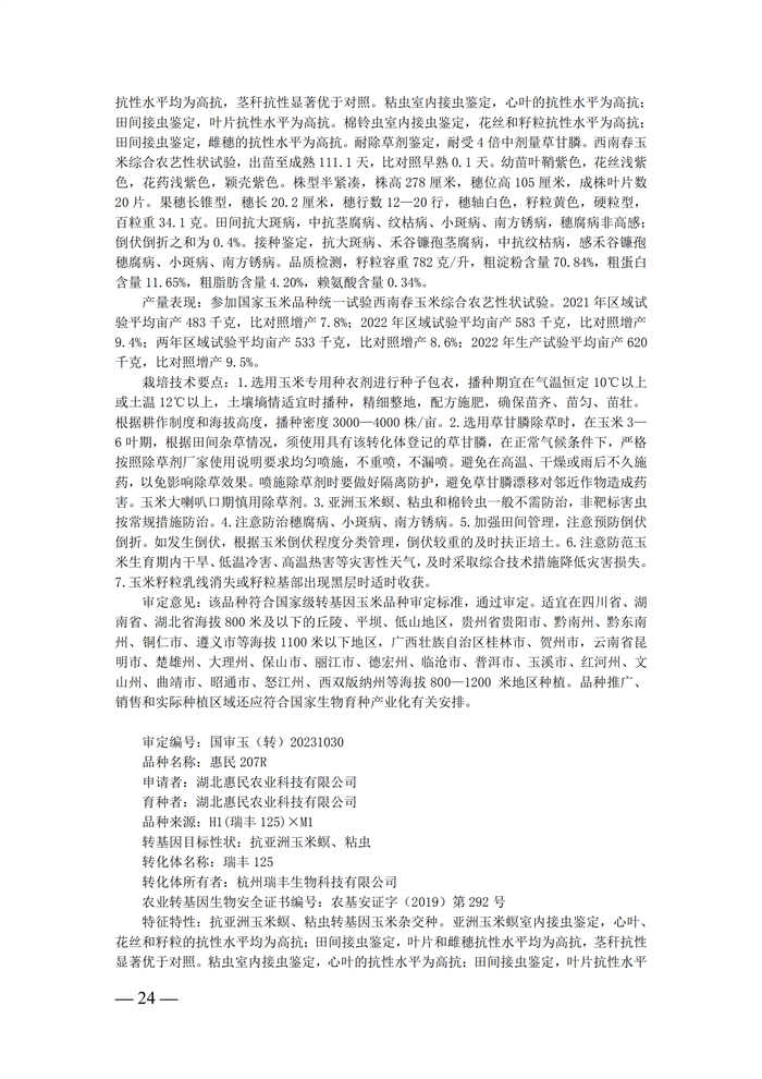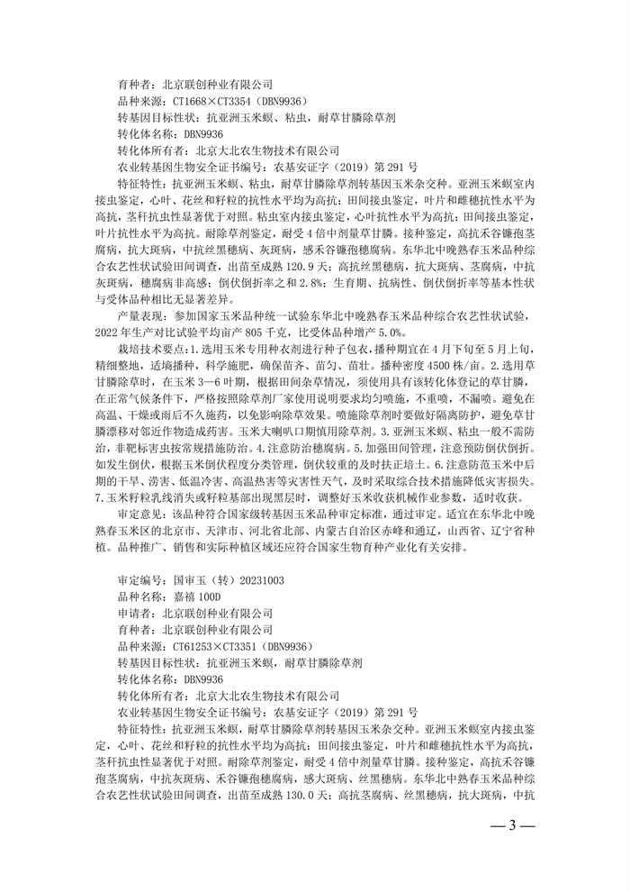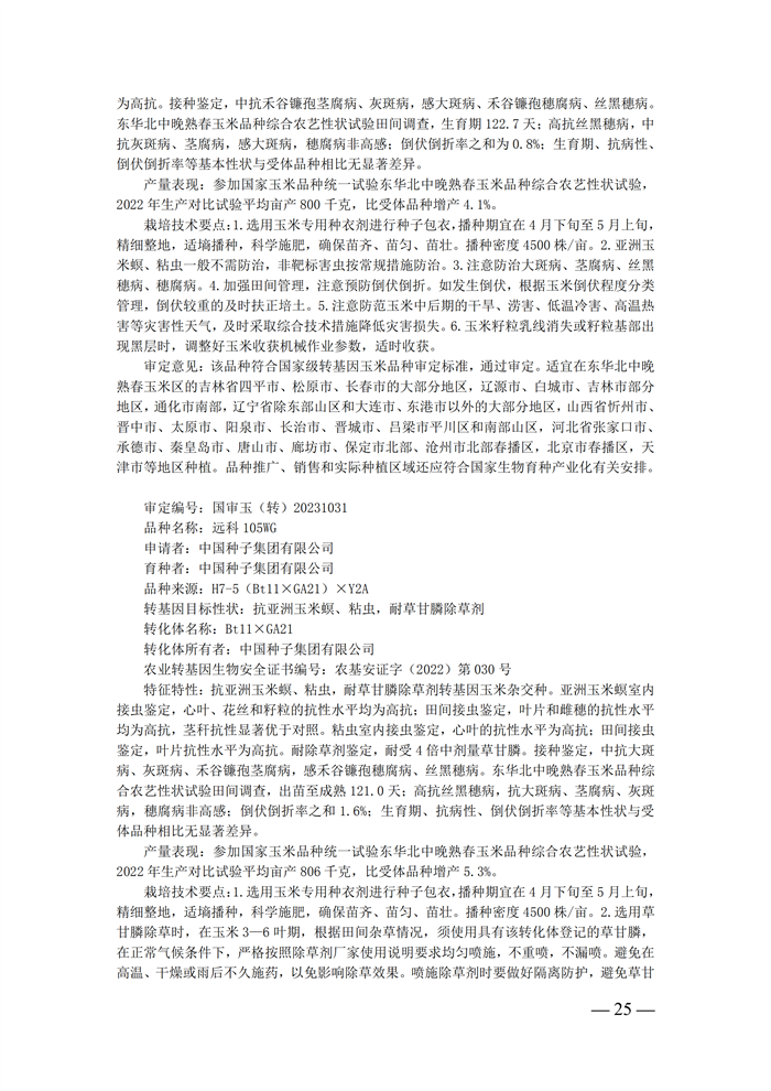 裕豐303D等51個轉(zhuǎn)基因品種審定信息