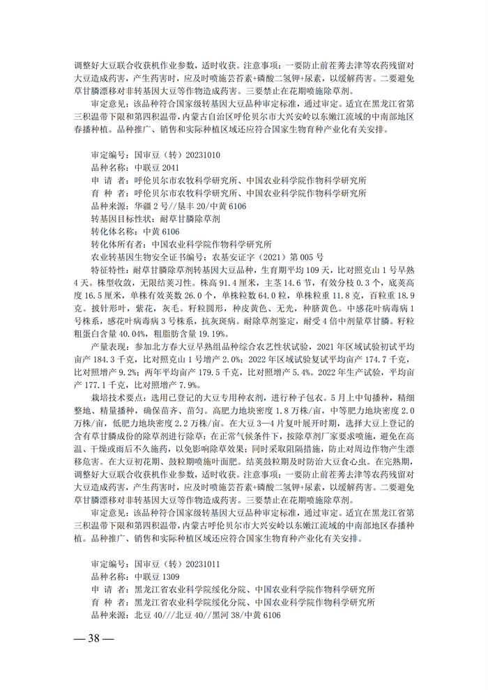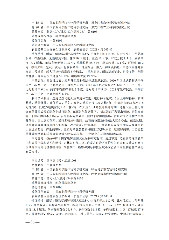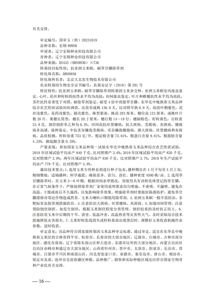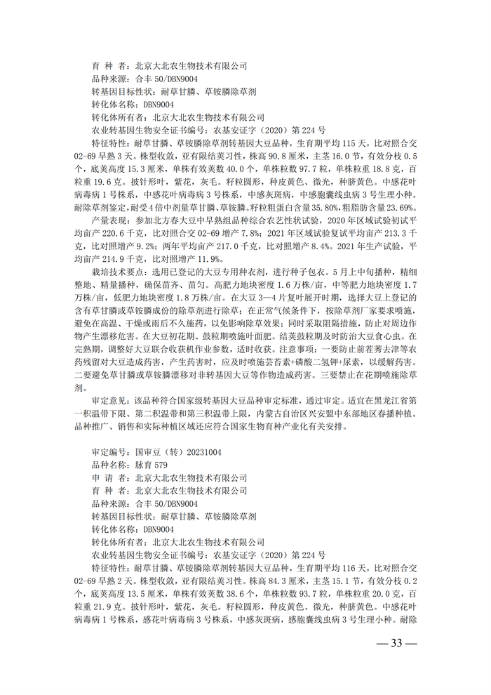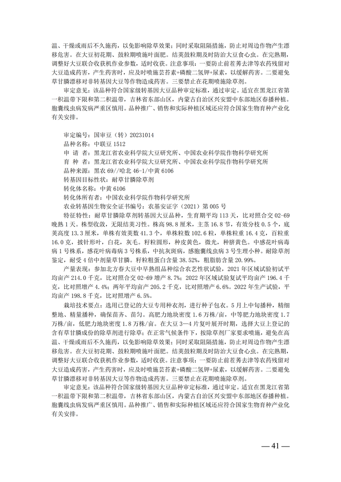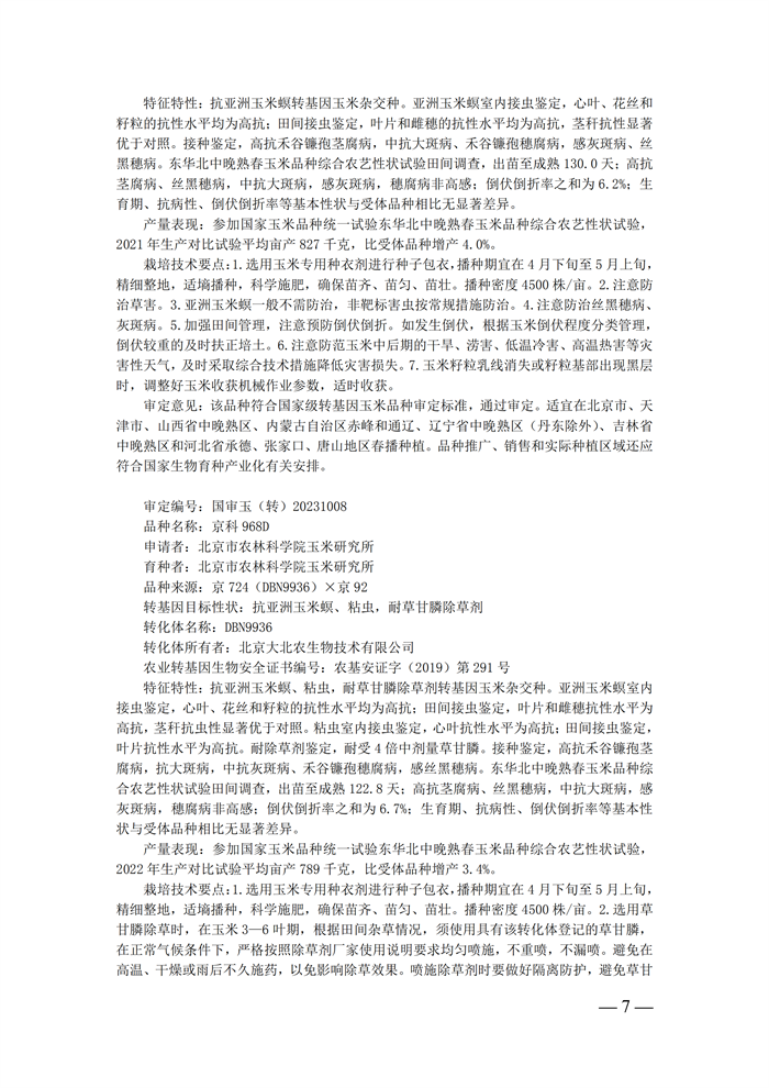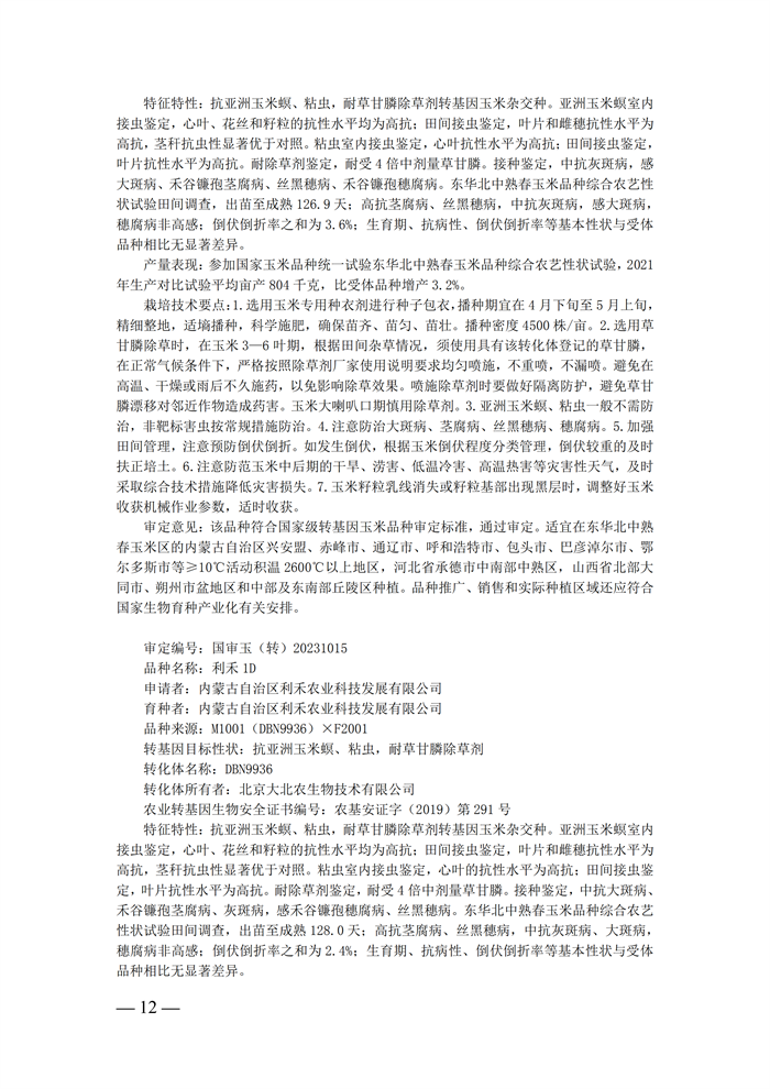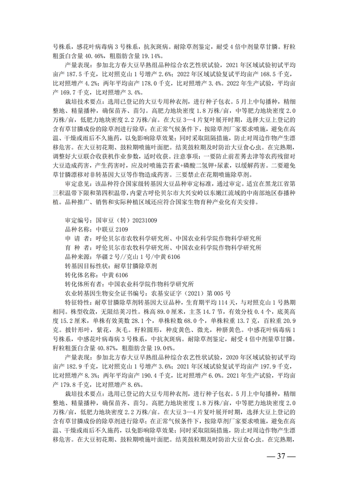 裕豐303D等37個轉(zhuǎn)基因玉米品種、脈育526等14個轉(zhuǎn)基因大豆品種,業(yè)經(jīng)第五屆國家農(nóng)作物品種審定委員會第四次會議審定通過,現(xiàn)予公告。