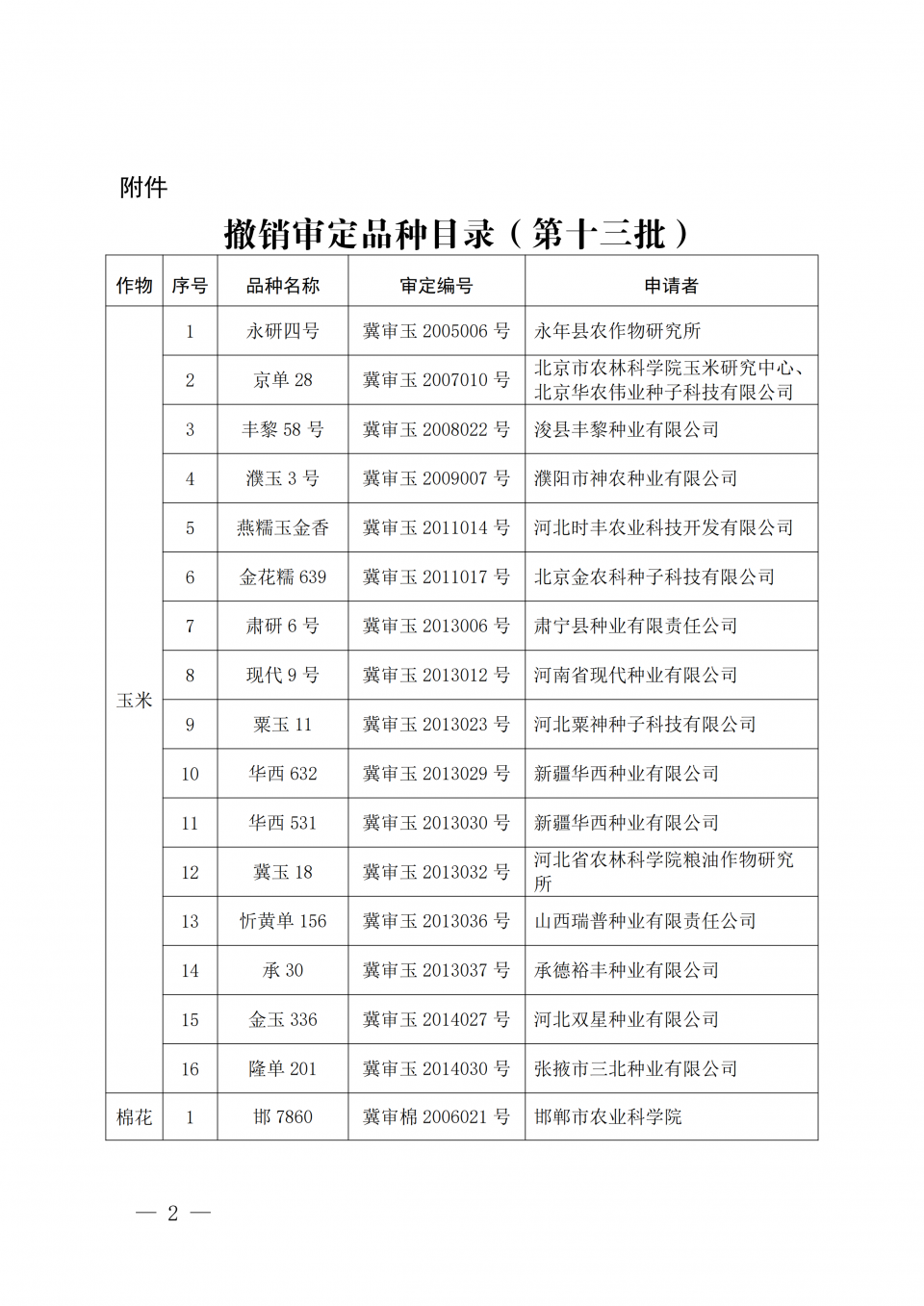 河北省農(nóng)業(yè)農(nóng)村廳關(guān)于撤銷部分主要農(nóng)作物審定品種的公告(第十三批).pdf