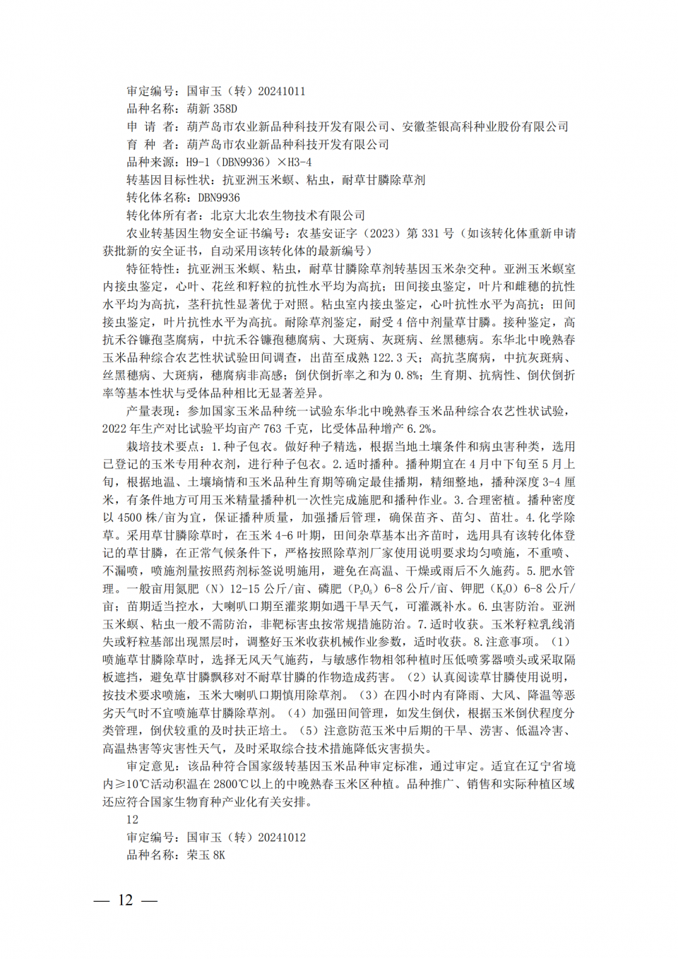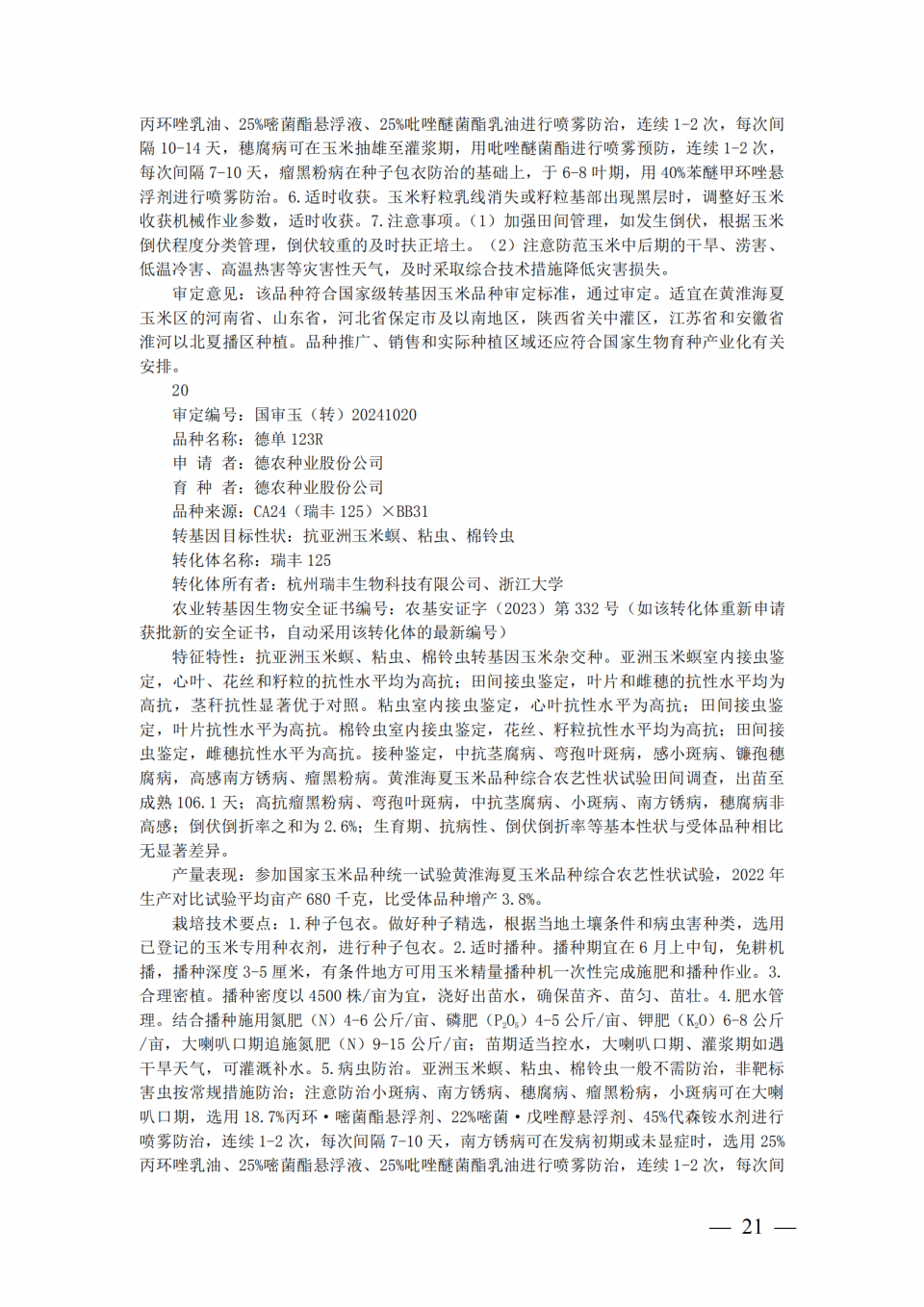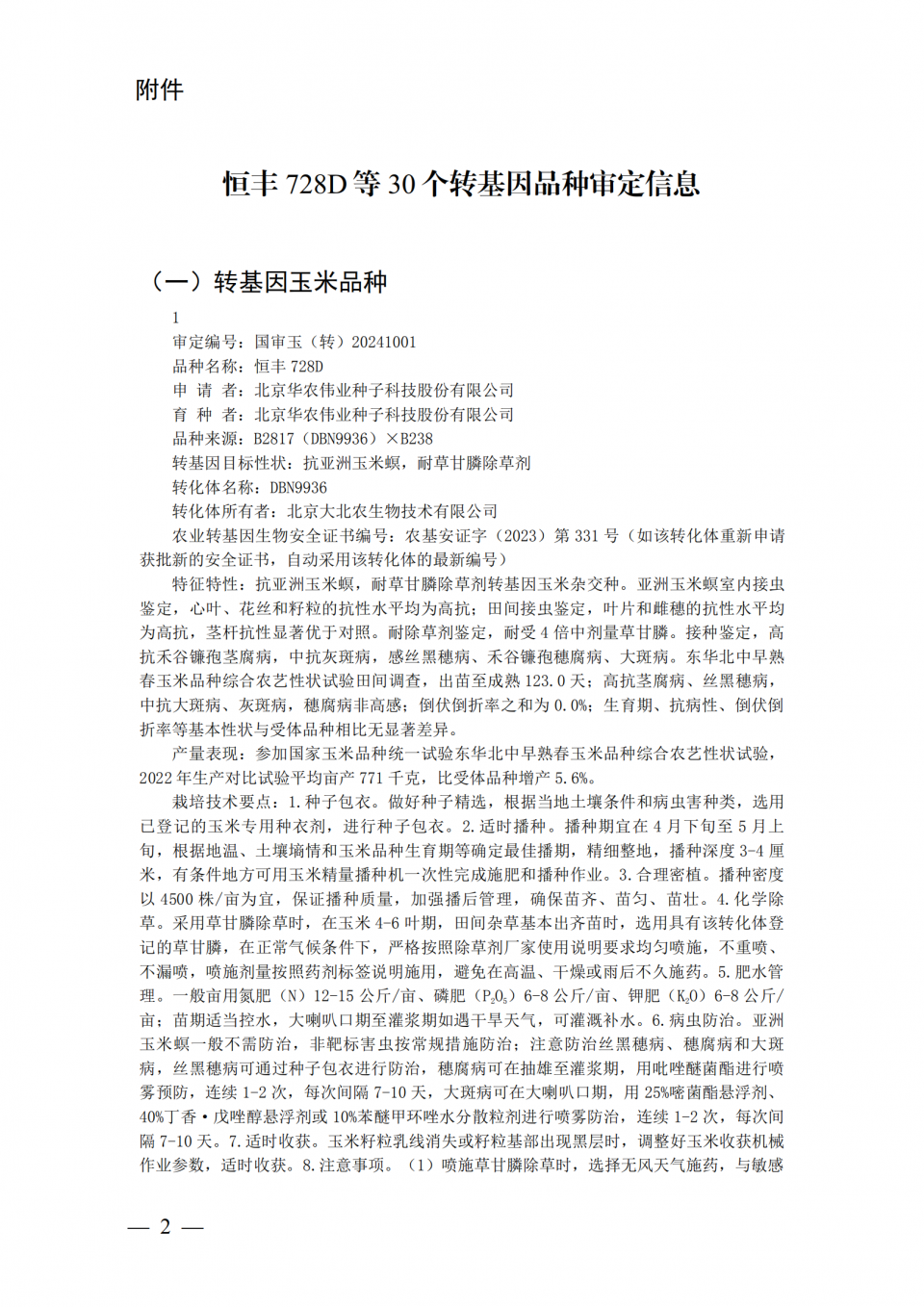 附件:恒豐728D等30個轉(zhuǎn)基因品種審定信息