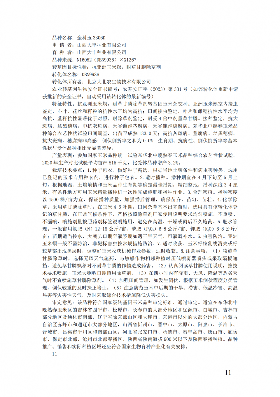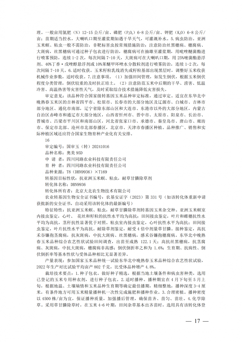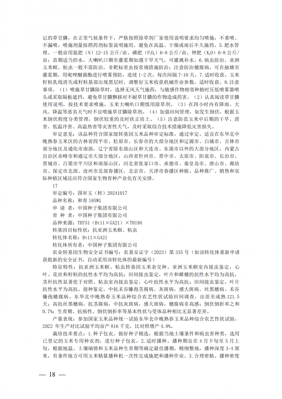 附件:恒豐728D等30個轉(zhuǎn)基因品種審定信息
