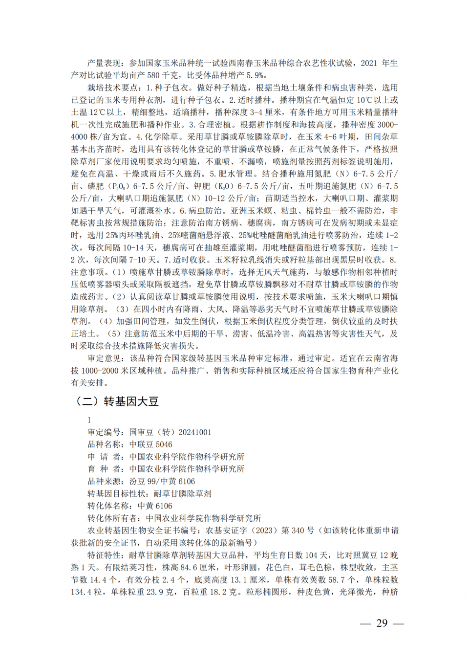 恒豐728D等27個轉(zhuǎn)基因玉米品種、中聯(lián)豆5046等3個轉(zhuǎn)基因大豆品種,業(yè)經(jīng)第五屆國家農(nóng)作物品種審定委員會第六次會議審定通過,現(xiàn)予公告。