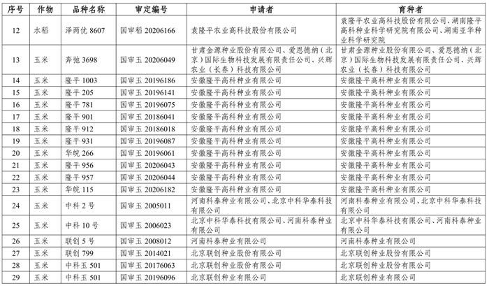 2025年國(guó)審小麥、水稻、玉米品種審定信息