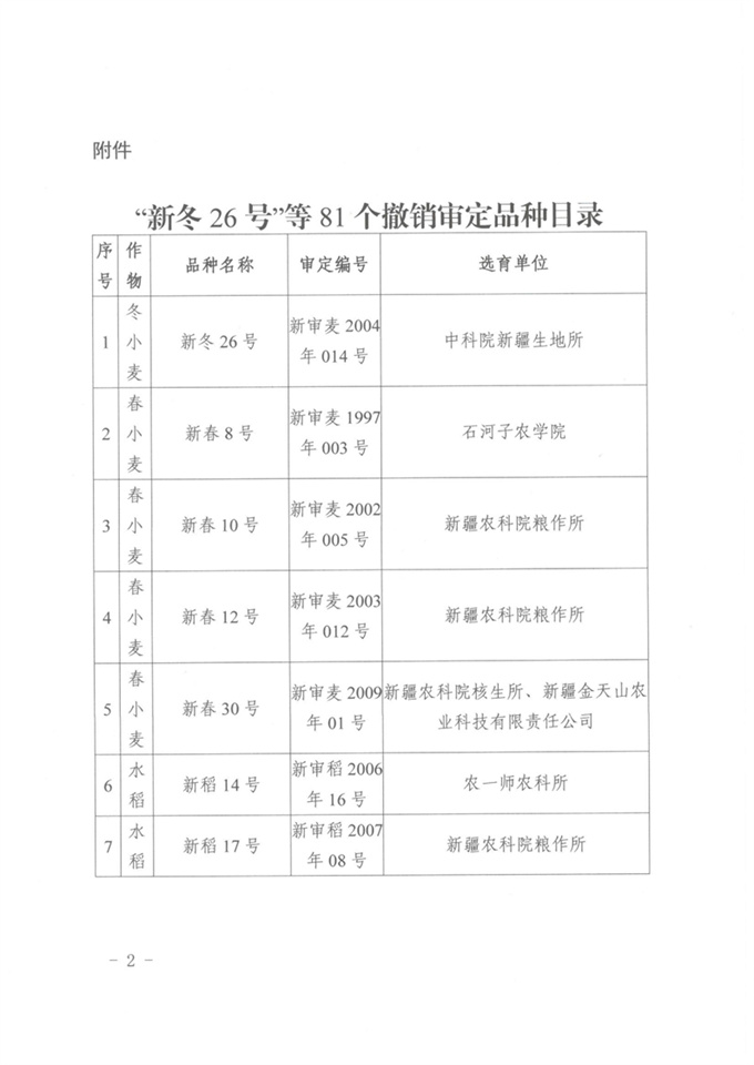 • 關(guān)于對(duì)“新冬26號(hào)”等81個(gè)主要農(nóng)作物品種撤銷審