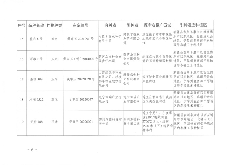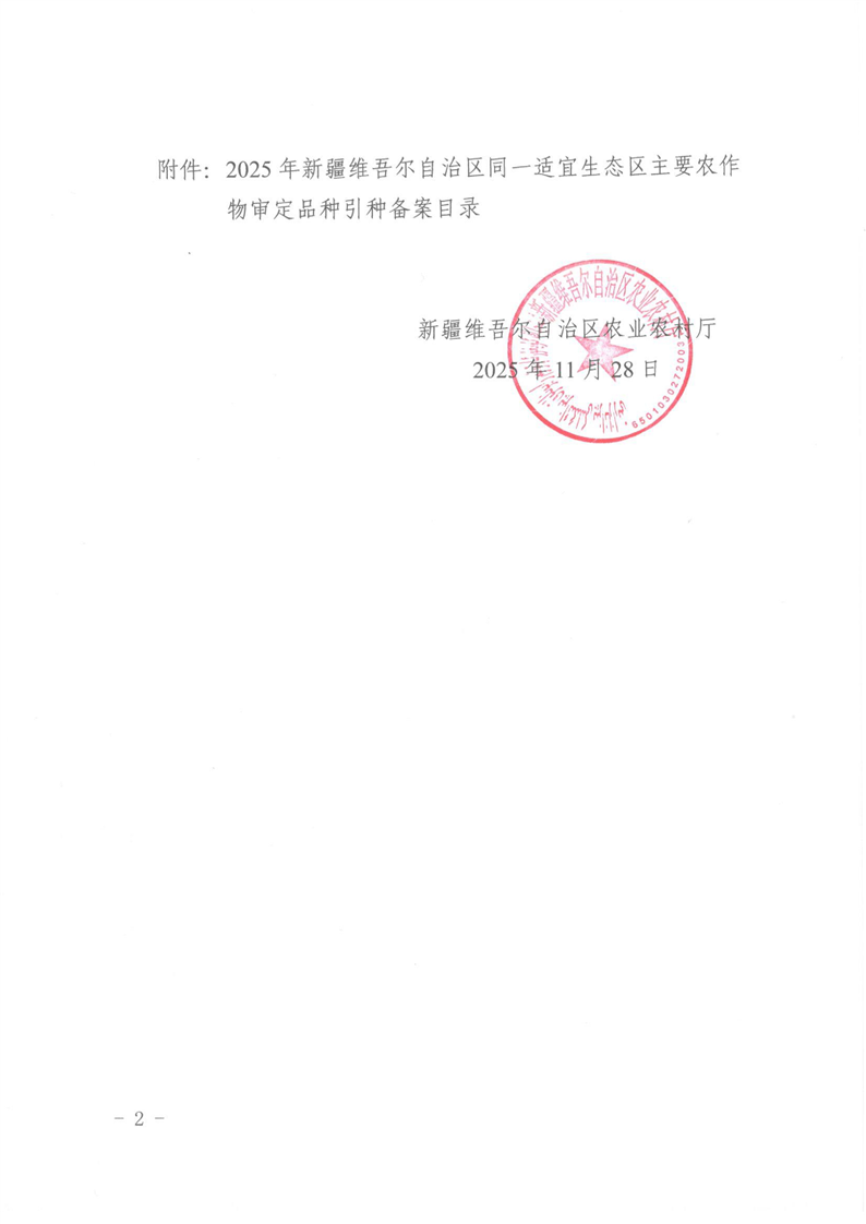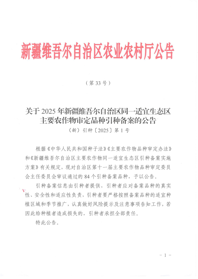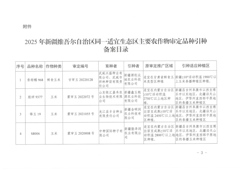 關(guān)于2025年新疆維吾爾自治區(qū)同一適宜生態(tài)區(qū)主要農(nóng)作物審定品種引種備案的公告