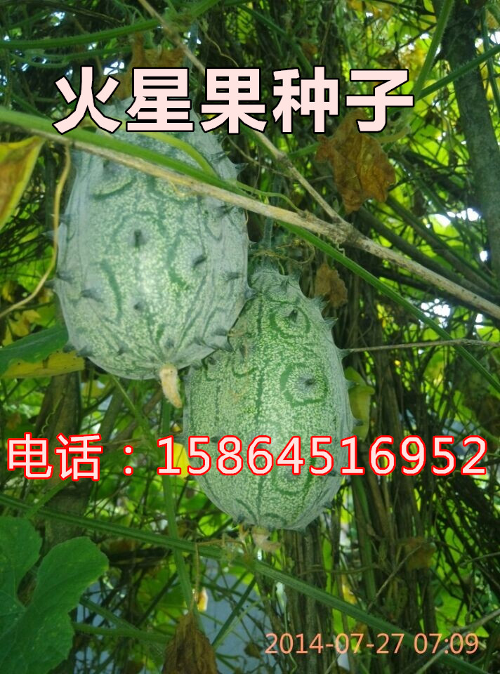 介紹:火星果又名:海參果、火參果,原產(chǎn)于非洲卡拉哈里沙漠,為葫蘆藤本蔓生植 物,根淺根系,莖5棱,莖葉均有毛,葉橢圓形,互生,似葫蘆一樣攀架生長,開黃花,雌雄同株,果實外表金黃色如芒果般狀,單果重100-200克,似葫蘆一樣攀架生長,開黃花,果實外表金黃色如芒果般狀,外表帶刺,十分的漂亮迷人,在國外傳說它是來自火星的奇特水果,所以叫為火星果,現(xiàn)在新西蘭、美國、澳大利亞、德國等地均有栽培,是一種一年多次種植的四季水果,果實像海參,又似帶刺的橄欖型瓜,用吸管可直接吸食,多汁,味道似香蕉、檸檬和黃瓜的三種混合,最近也已在國內(nèi)進口水果市場上現(xiàn)身,