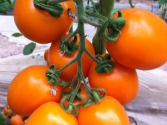 羅曼型黃色番茄,無限生長型,早熟,果實長橢圓型,萼片美觀,每穗坐果數(shù)8-10個,平均單果重90克,成熟一致,可串收,連續(xù)坐果能力強。硬度好,風(fēng)味濃??狗腰S化曲葉病毒病,適合北方春秋保護(hù)地或南方露地種植。